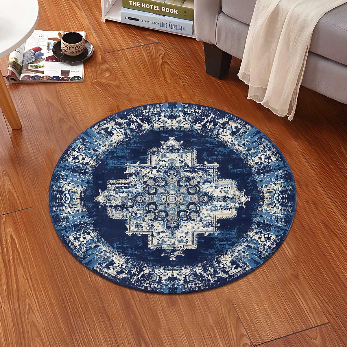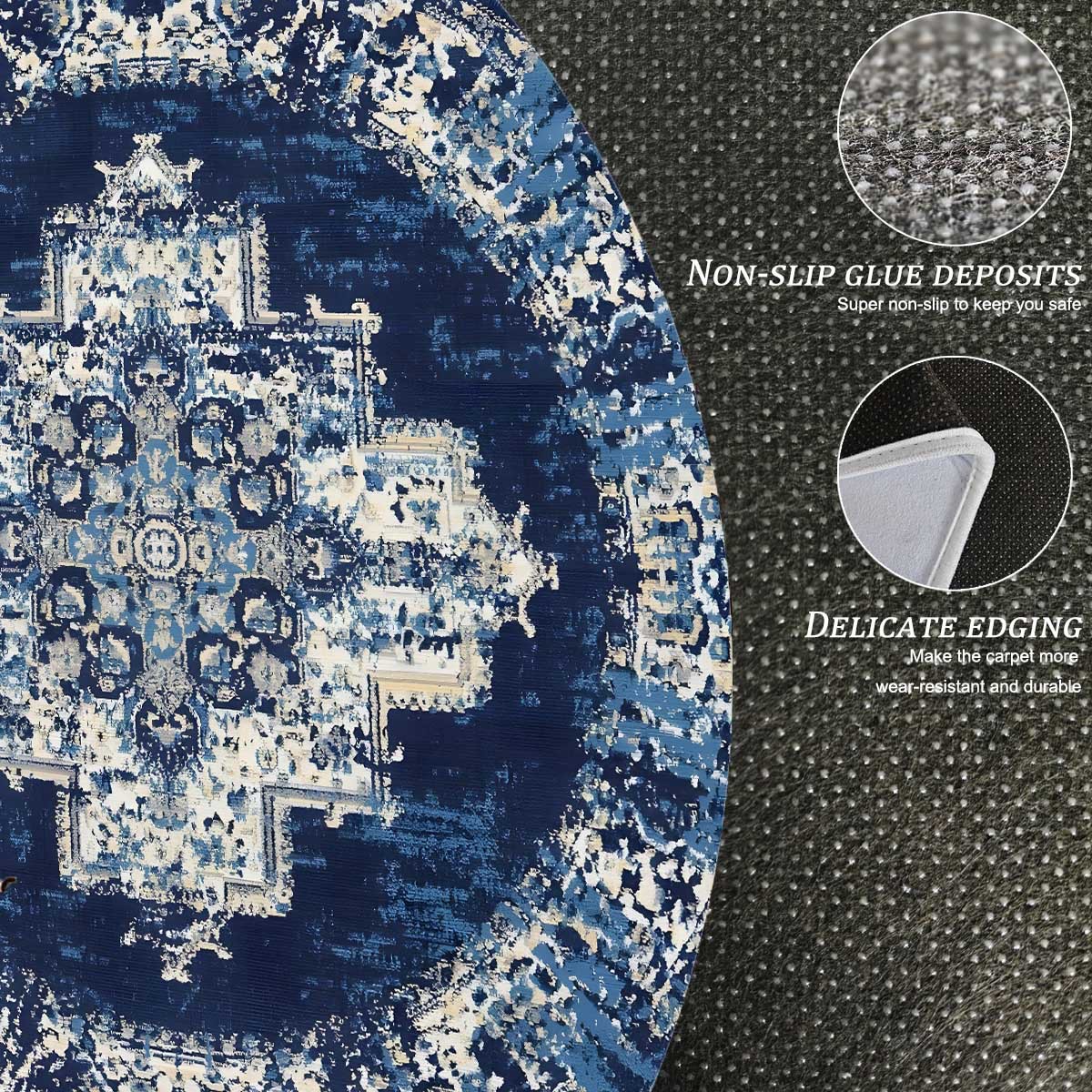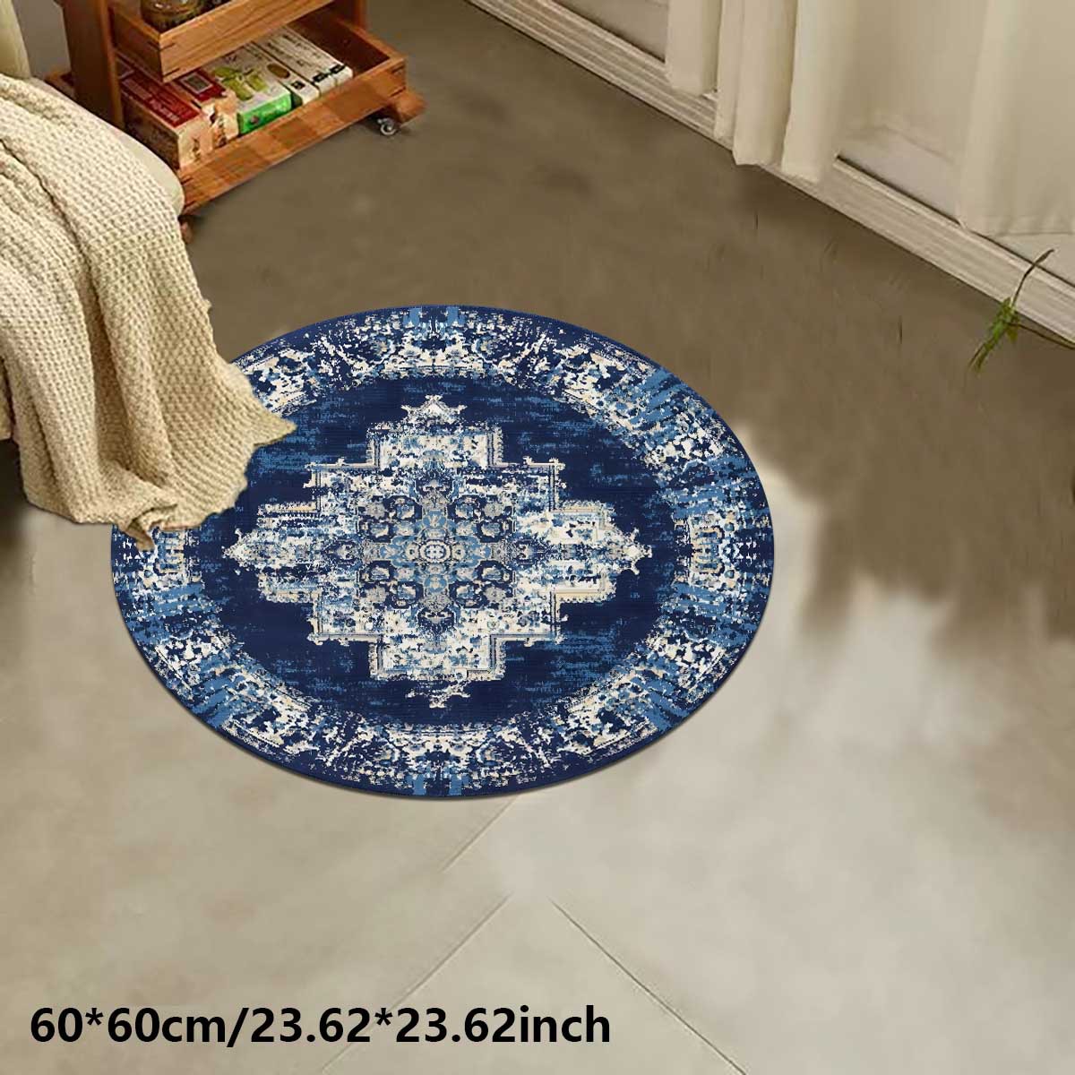 retro blue pattern crystal velvet carpet bedroom mat mat non-slip mat