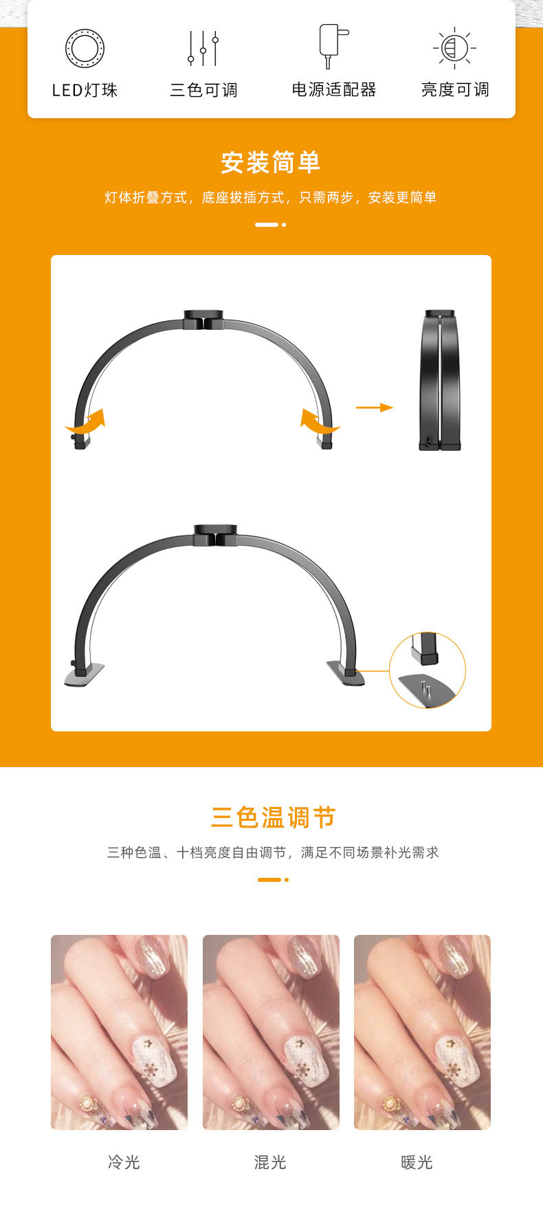 foreign trade exclusive for eye protection foldable half-month hot lamp eyelash tattoo embroidery beauty fill light nail lighting table lamp