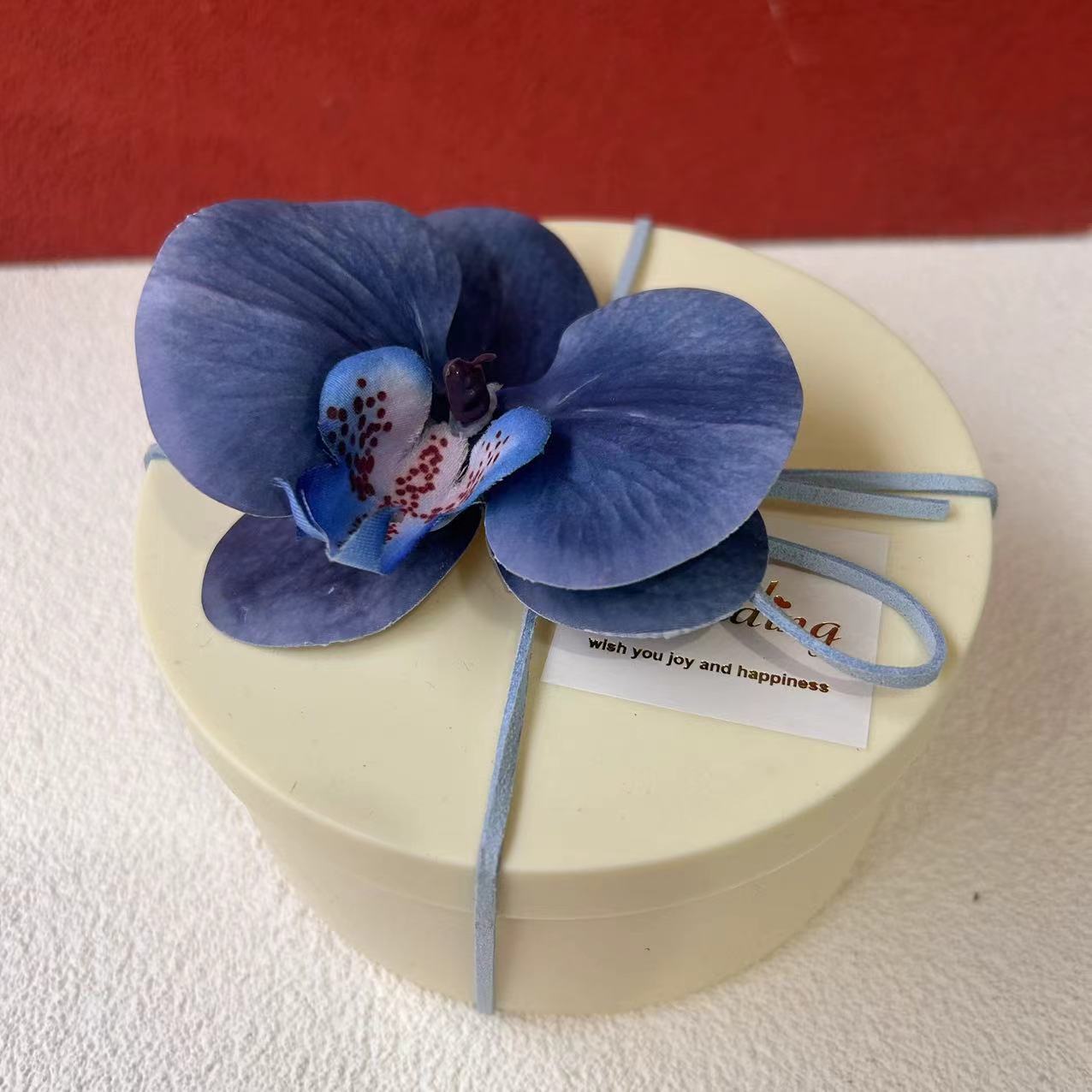 A product includes: a box, a leather strap, flowers, stickers, and pins.