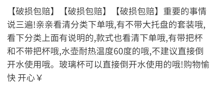 | 6 high diamond + kettle + glass large tray | CN¥ 50.12 | 999999 piece available |