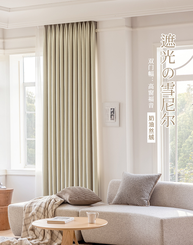 cream velvet chenille shading curtain modern minimalist cream bay window living room new