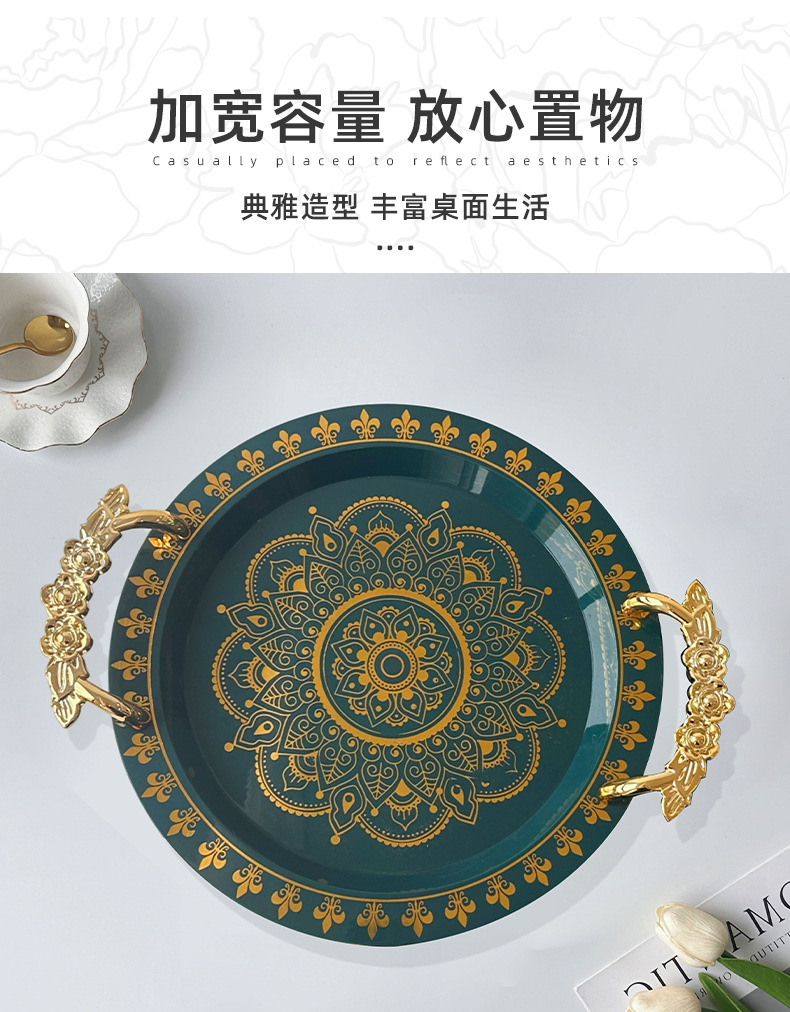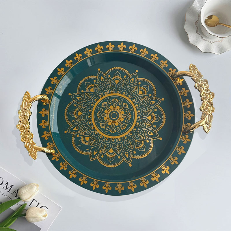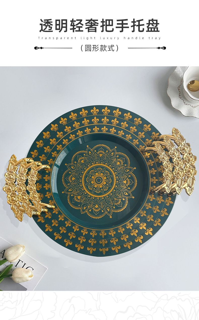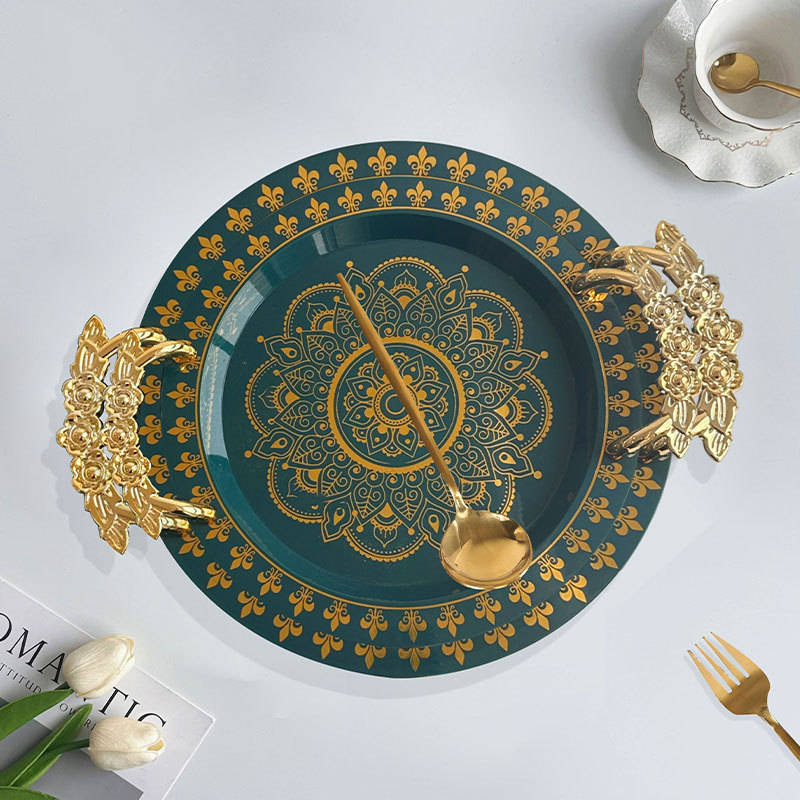 | green gilding round wide edge tray rose handle | CN¥ 6.3 | 99988 piece available |