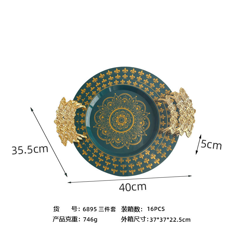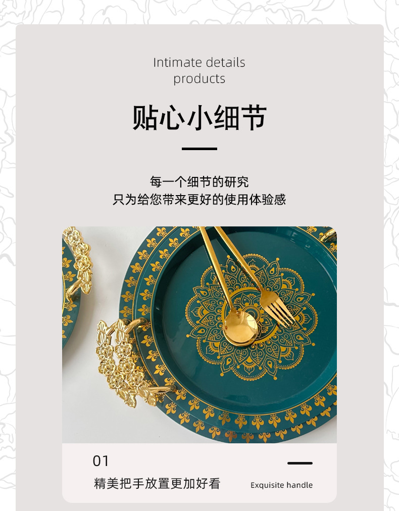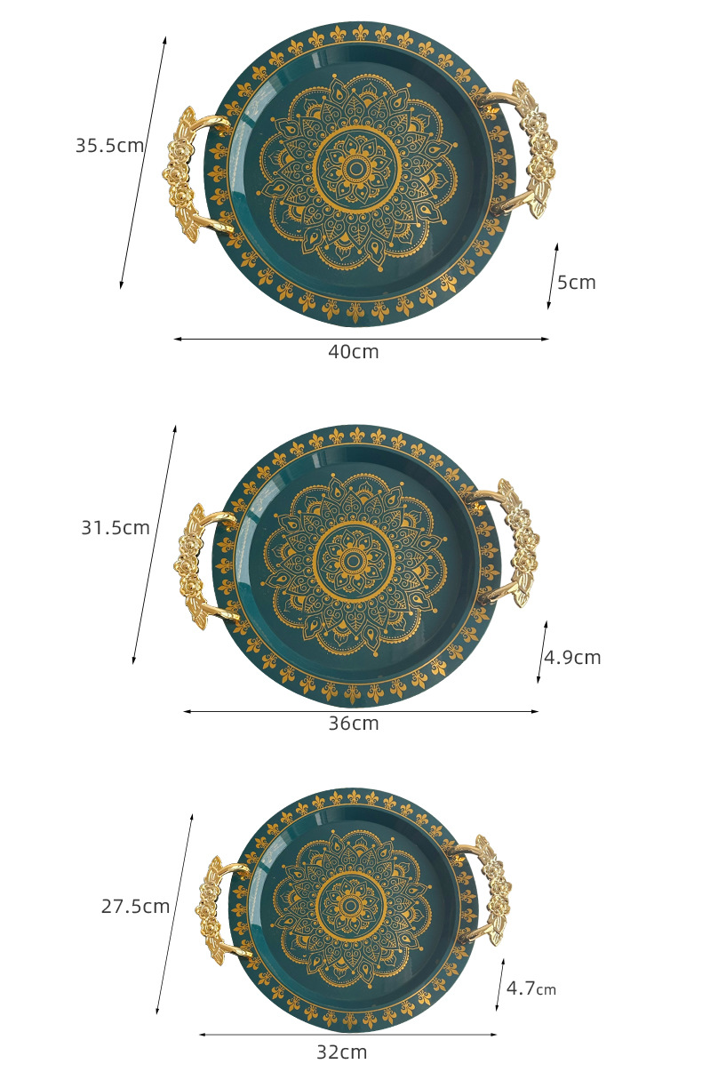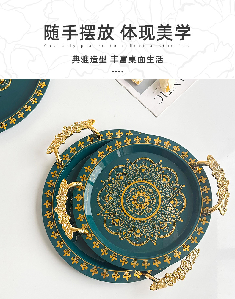 | green gilding round wide edge tray rose handle | CN¥ 6.3 | 99988 piece available |
