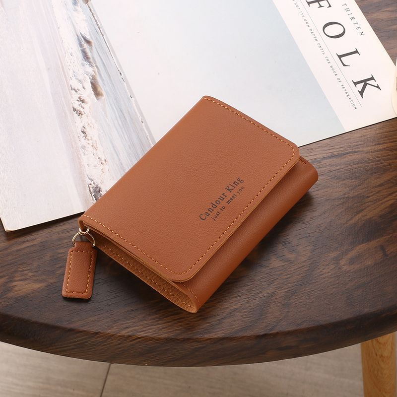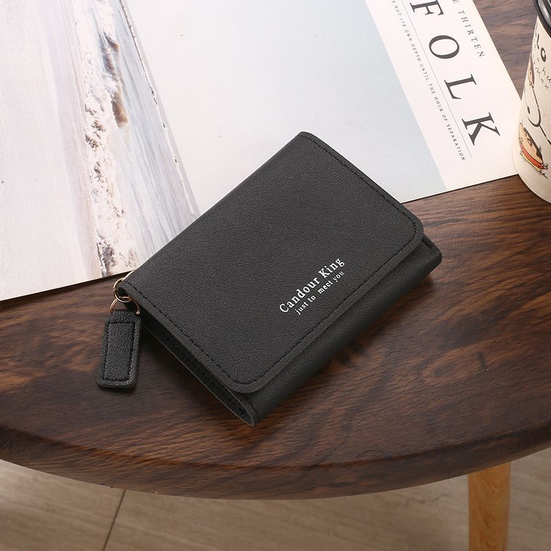 2024 new wallet female student korean style short card holder wallet two-in-one female high-grade folding mini purse