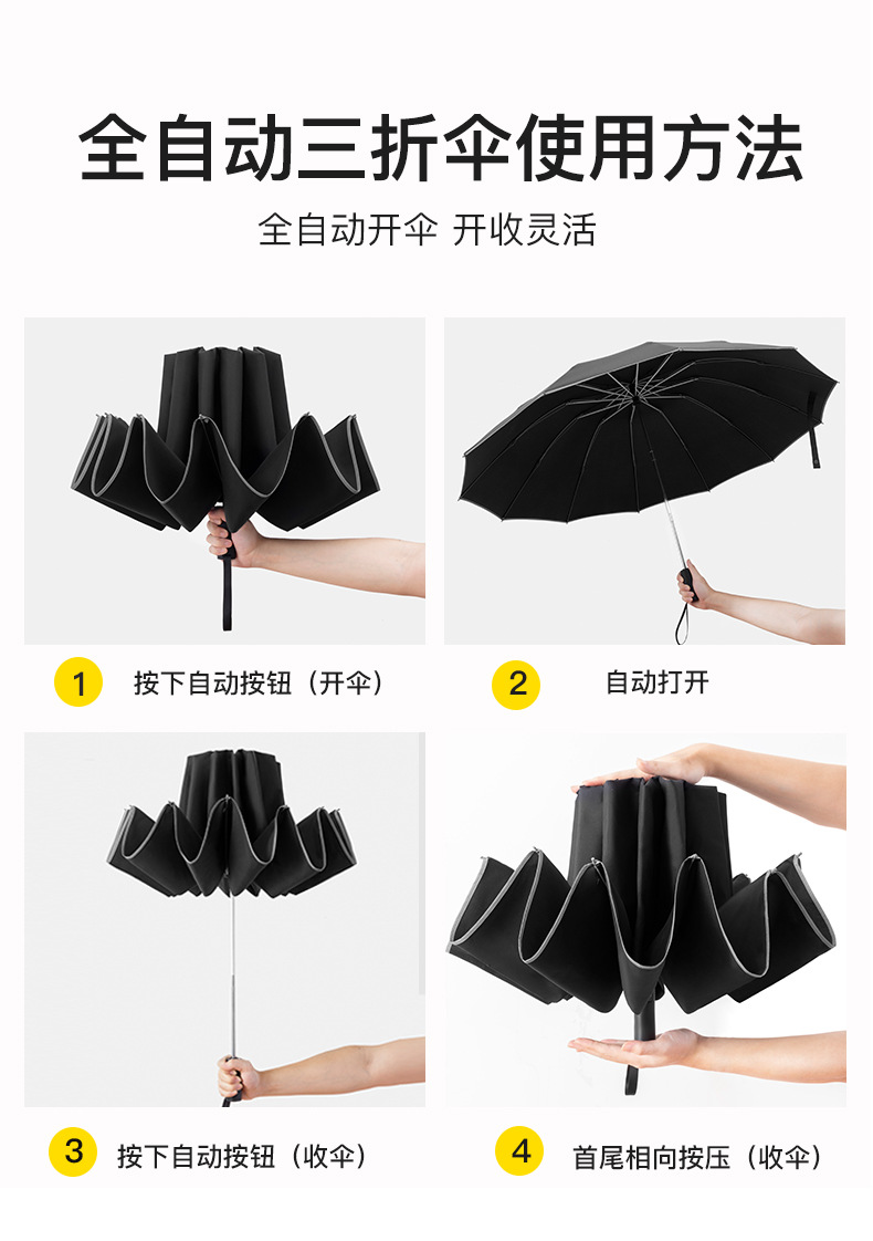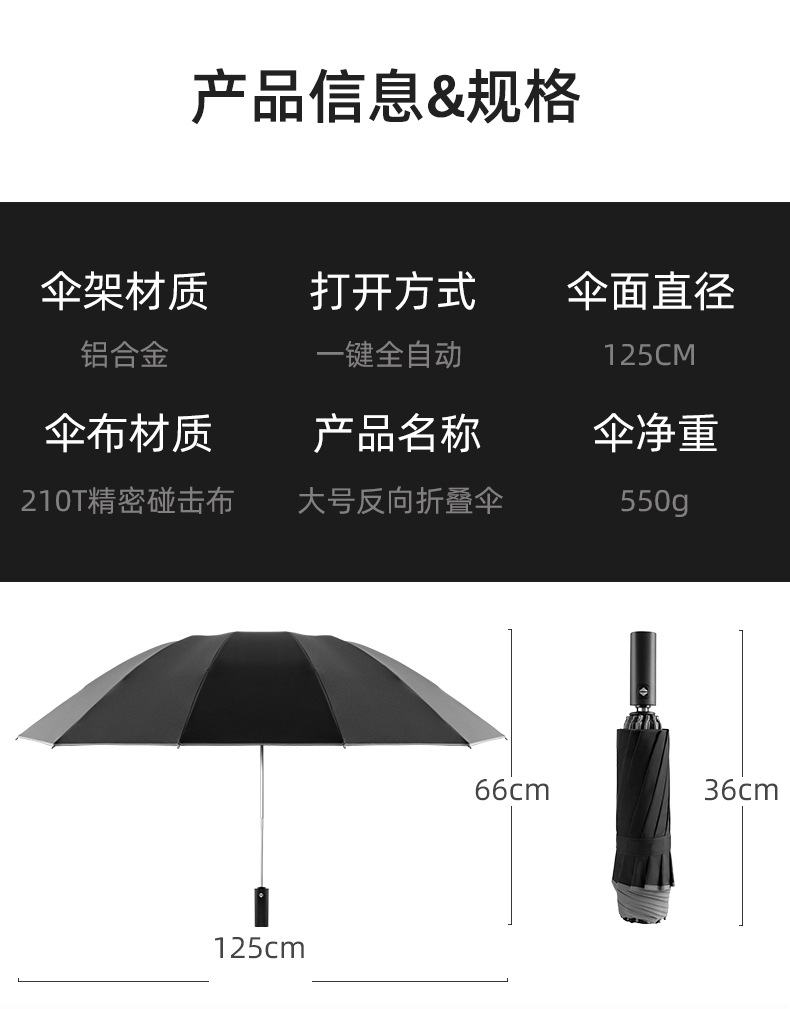 oversized three-person reverse 12-bone automatic-umbrella-reflective stripe-black