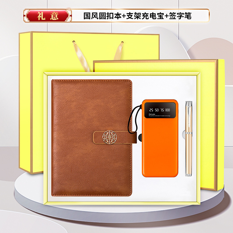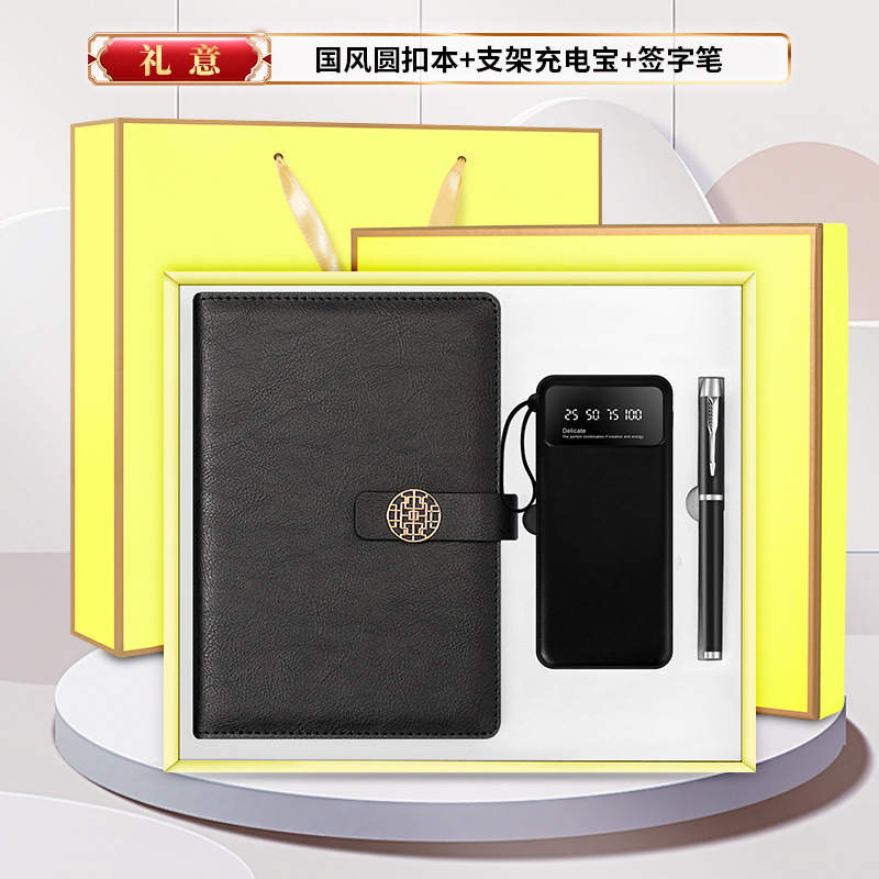 black-national fashion buckle bracket power round pen three-piece set