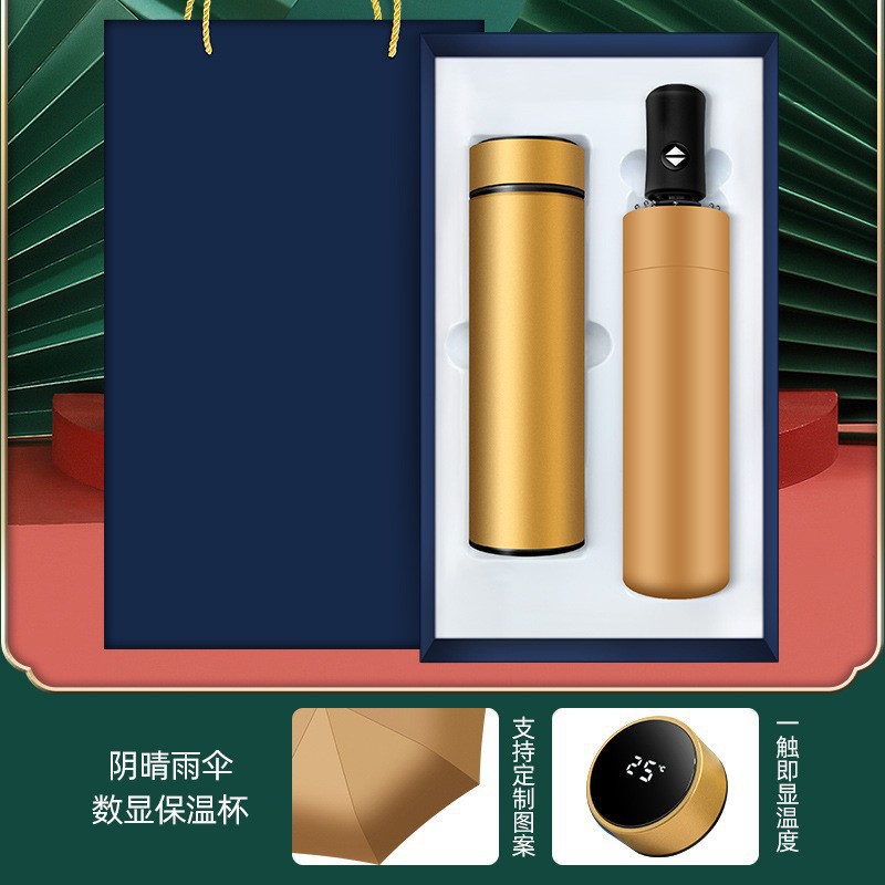 golden-national fashion buckle 450ml temperature control cup round pen eight-bone umbrella four-piece set