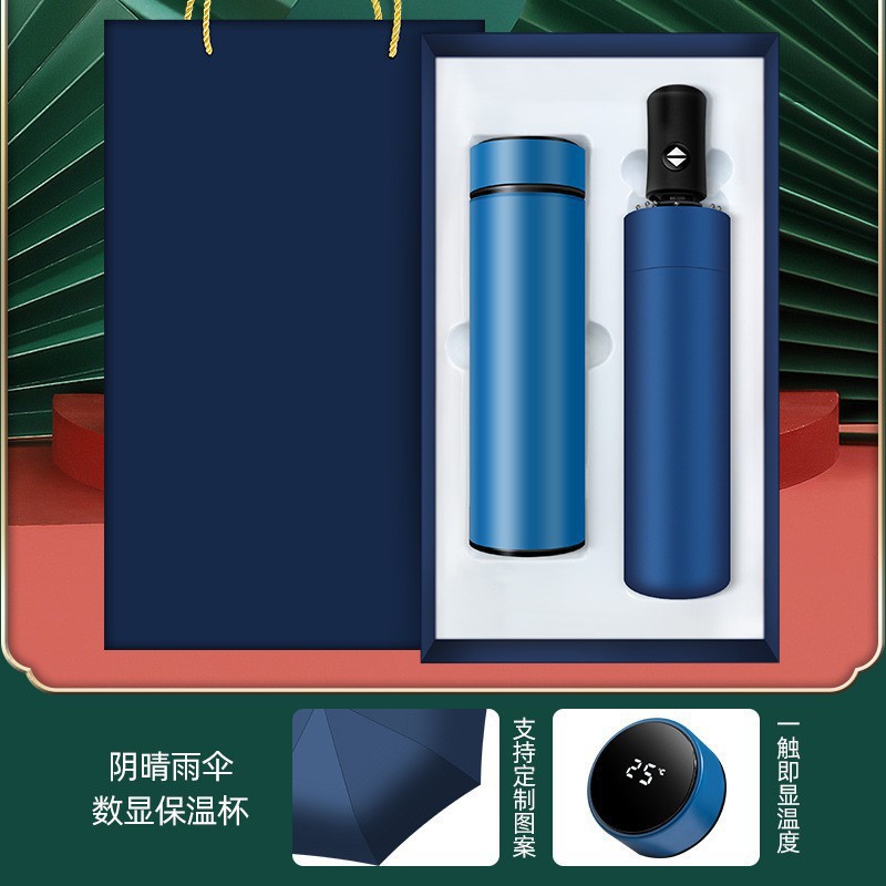 blue-national fashion buckle 450ml temperature control cup round pen eight-bone umbrella 16g mobile phone u-disk audio digital display power supply seven-piece
