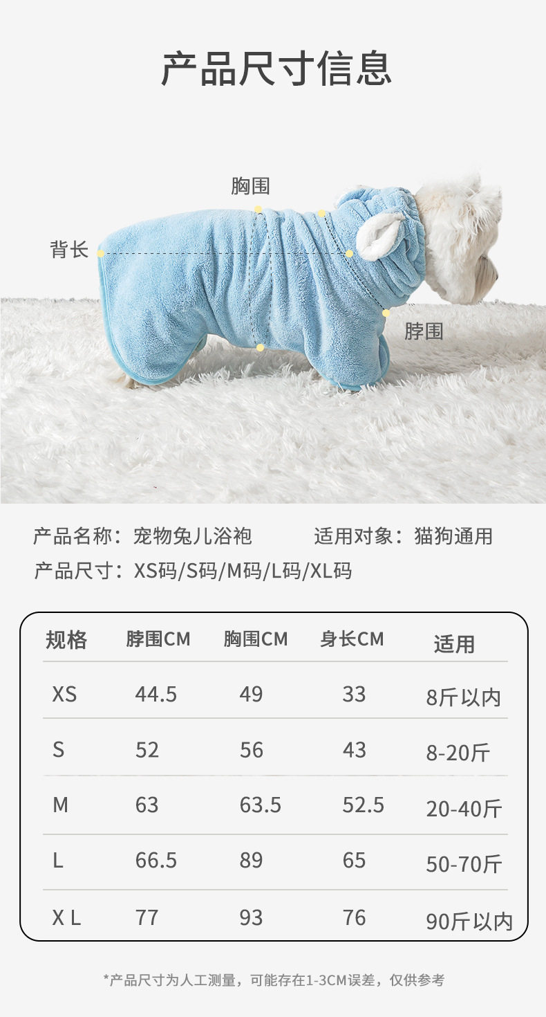 hooded blue-pet bathrobe size s (suitable for pets within 4.00 kg-10.00 kg)