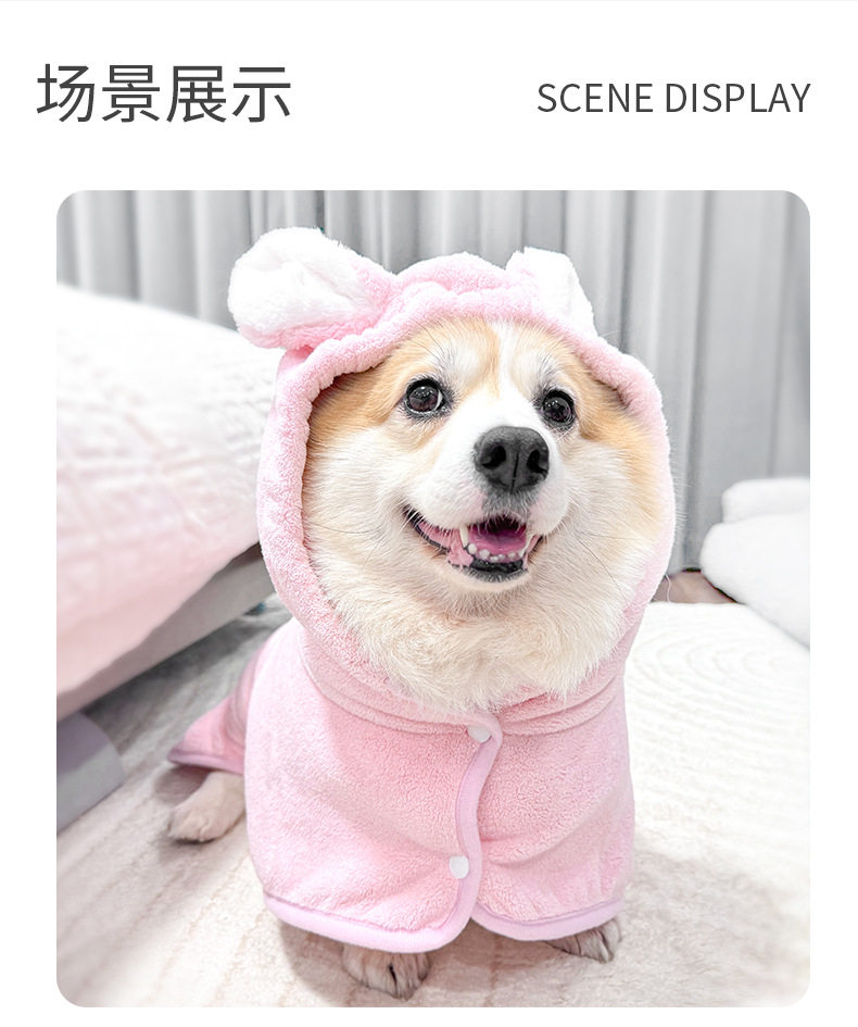 hooded coral fleece pink-pet bathrobe size m (suitable for pets within 10.00 kg-20.00 kg)