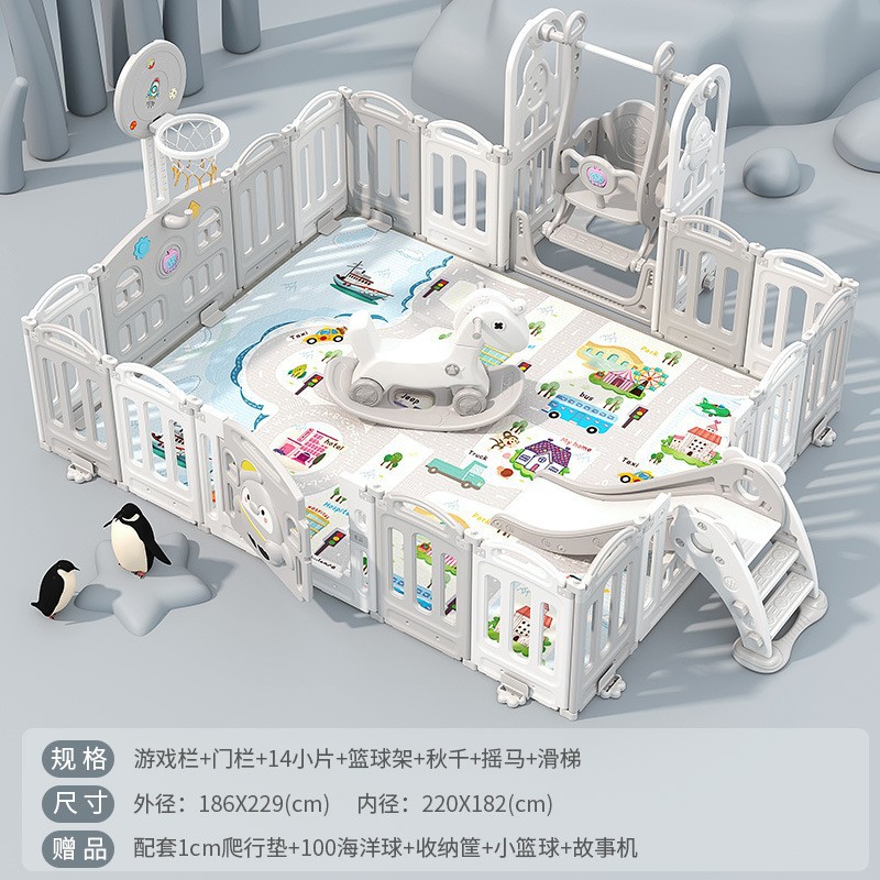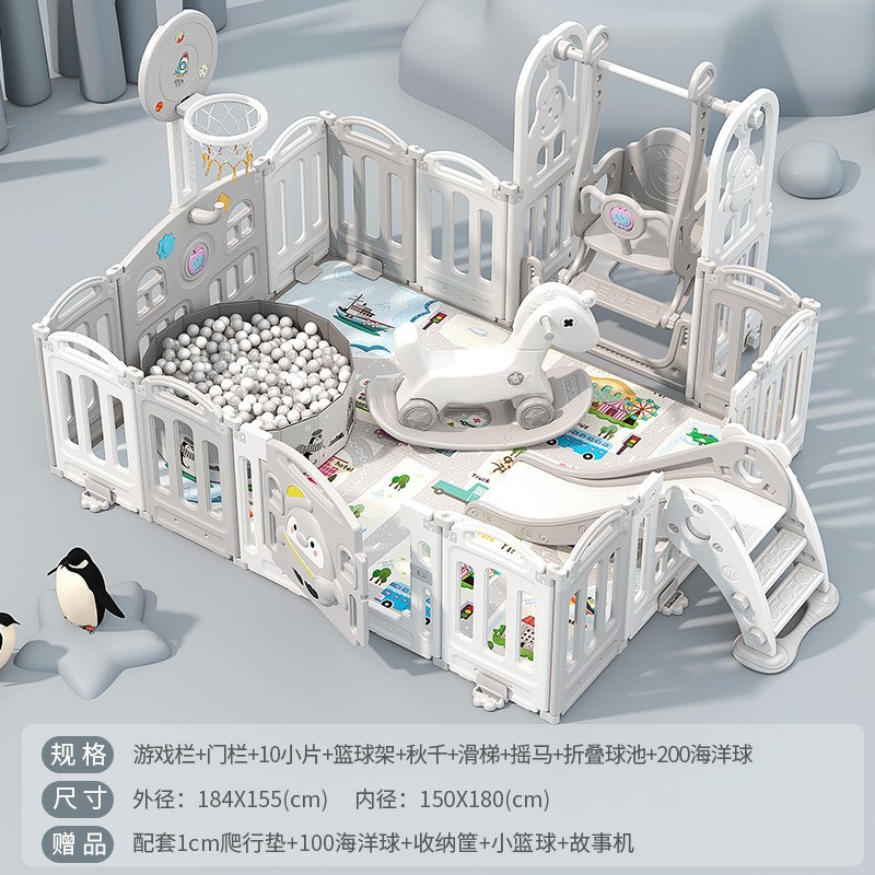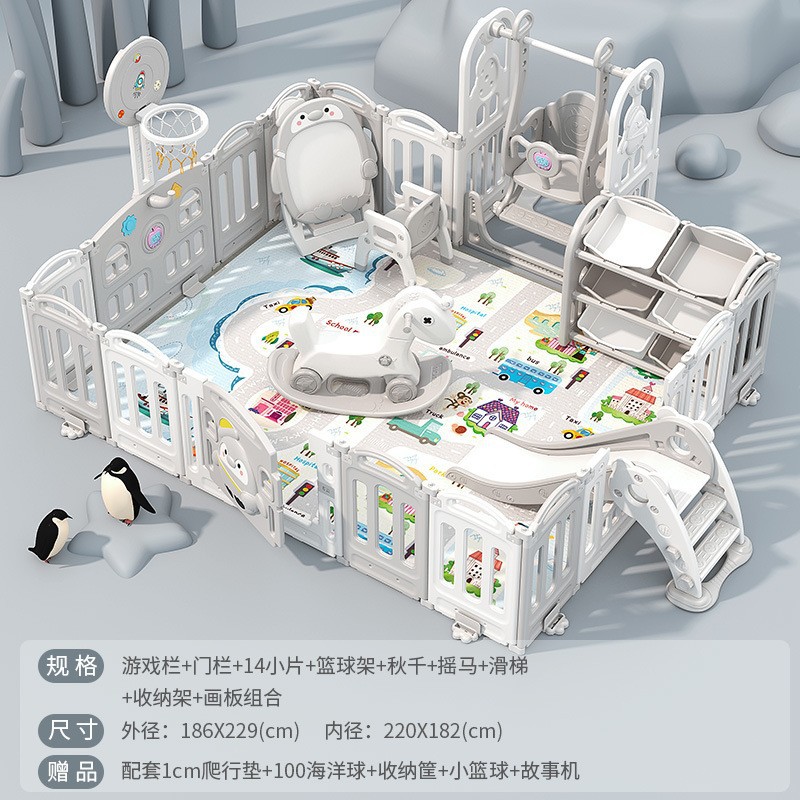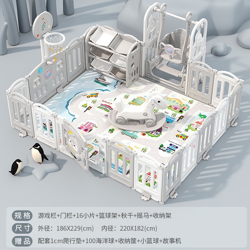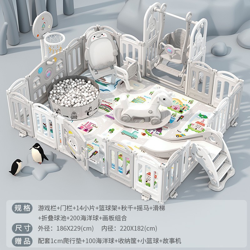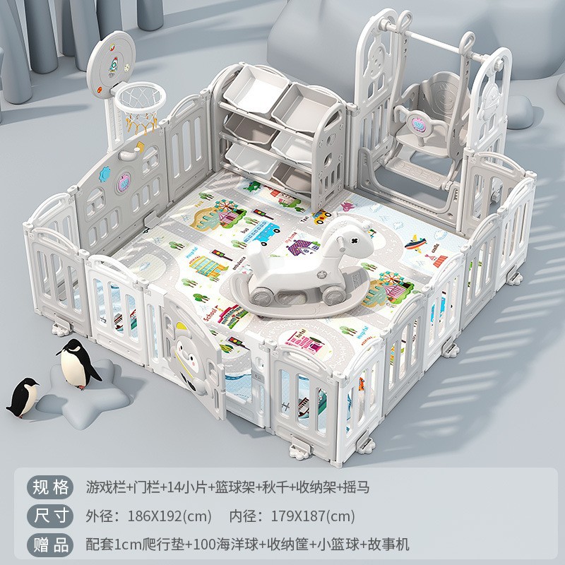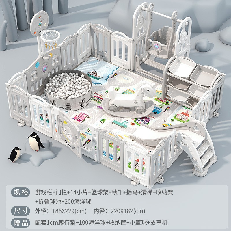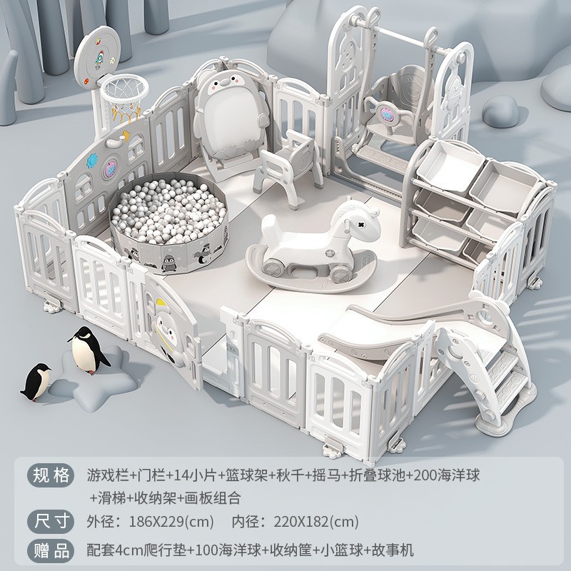 1.86x2.29m gray + swing + rocking horse + slide + ball pool + drawing board + storage rack +4cm floor mat