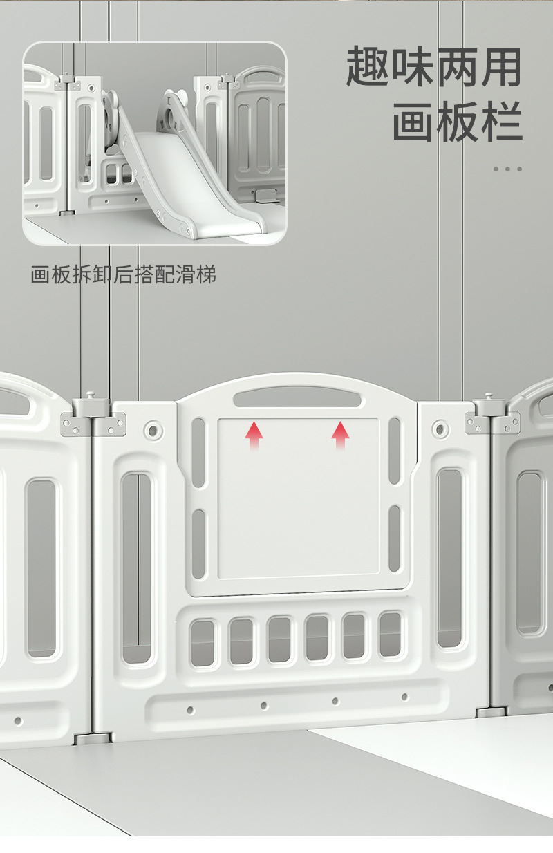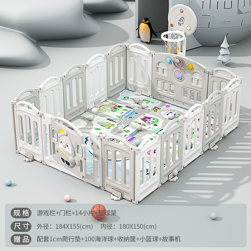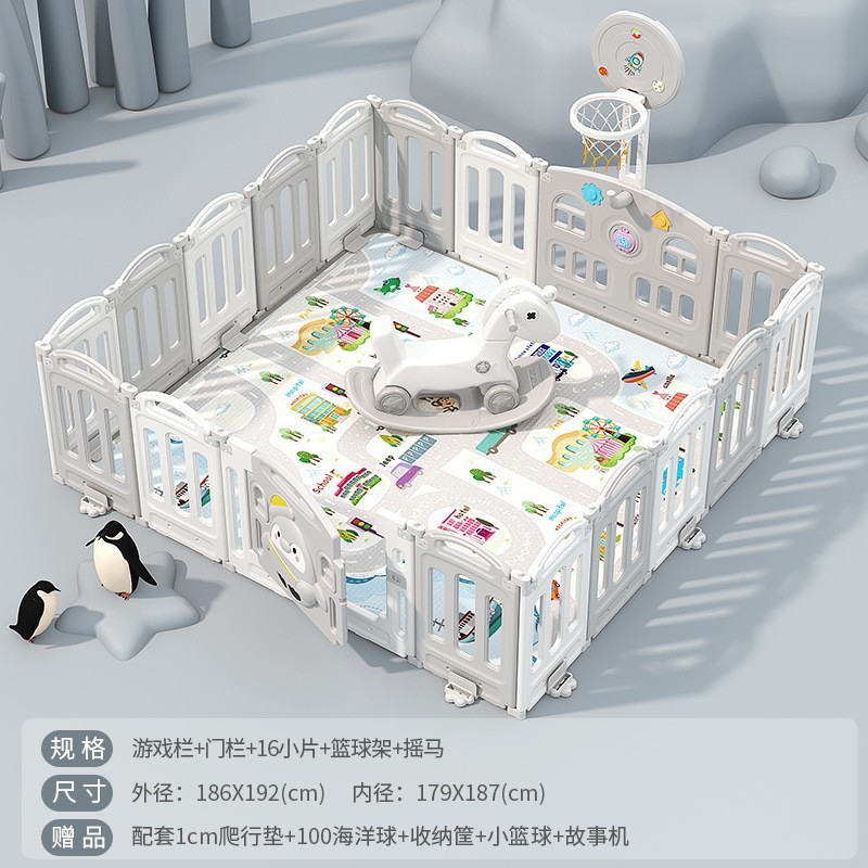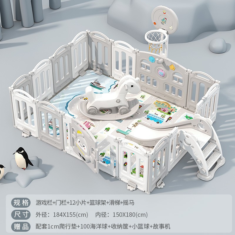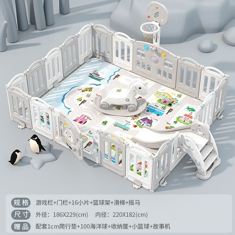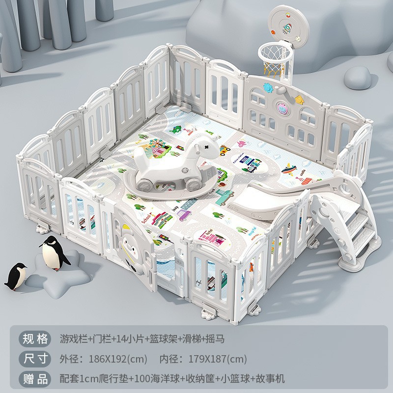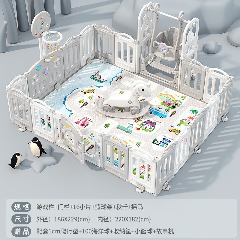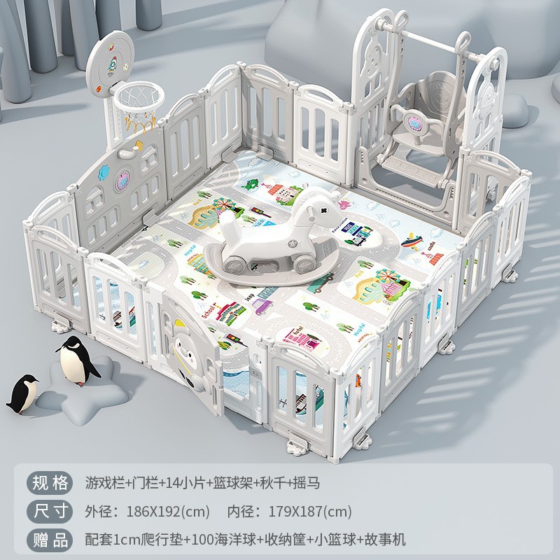 1.86x2.29m gray + swing + rocking horse + slide + ball pool + drawing board + storage rack +4cm floor mat