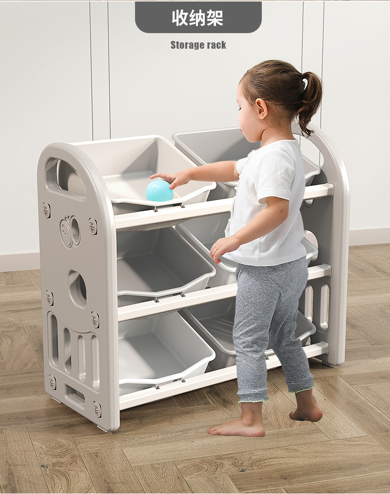 1.86x2.29m gray + swing + rocking horse + slide + ball pool + storage rack
