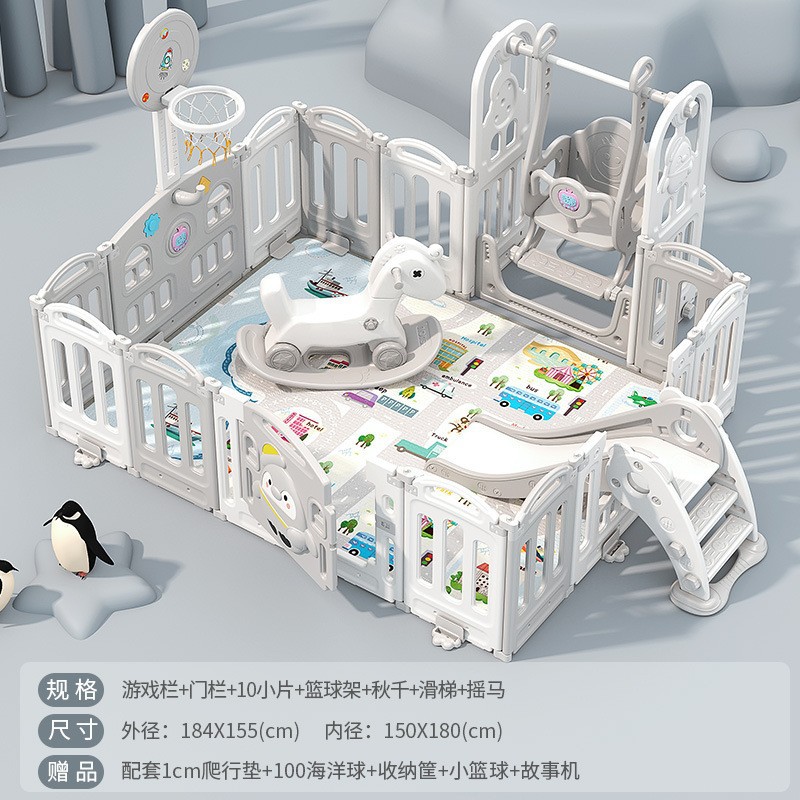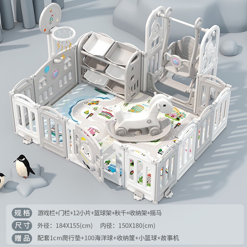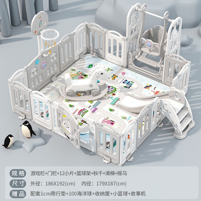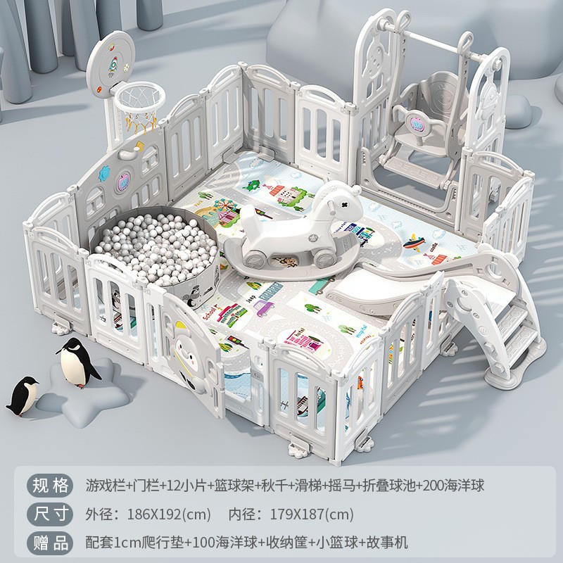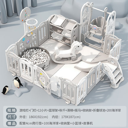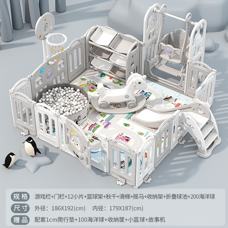1.86x1.92m gray + swing + rocking horse + slide + ball pool + storage rack + 4cm floor mat