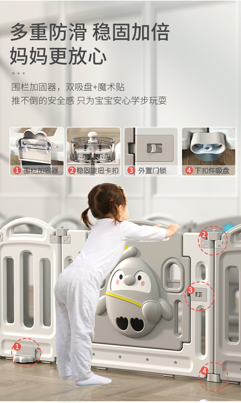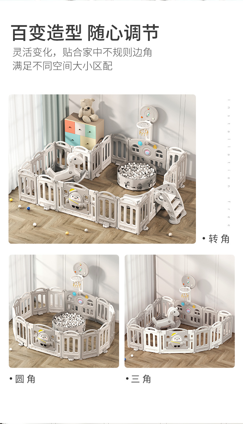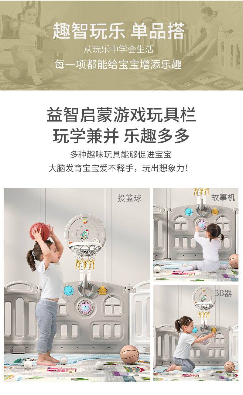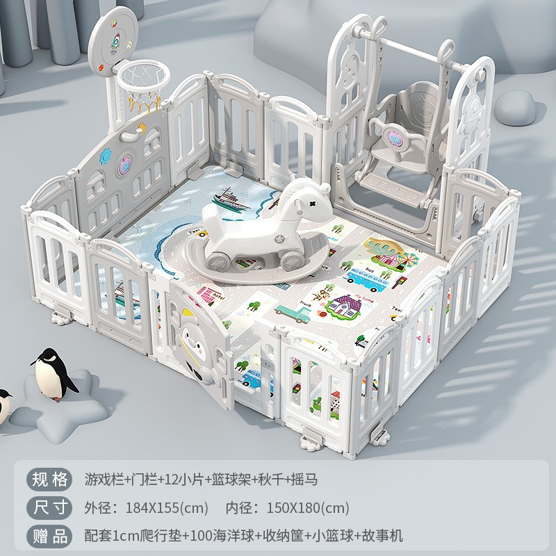1.86x1.92m gray + swing + rocking horse + slide + ball pool + storage rack + 4cm floor mat
