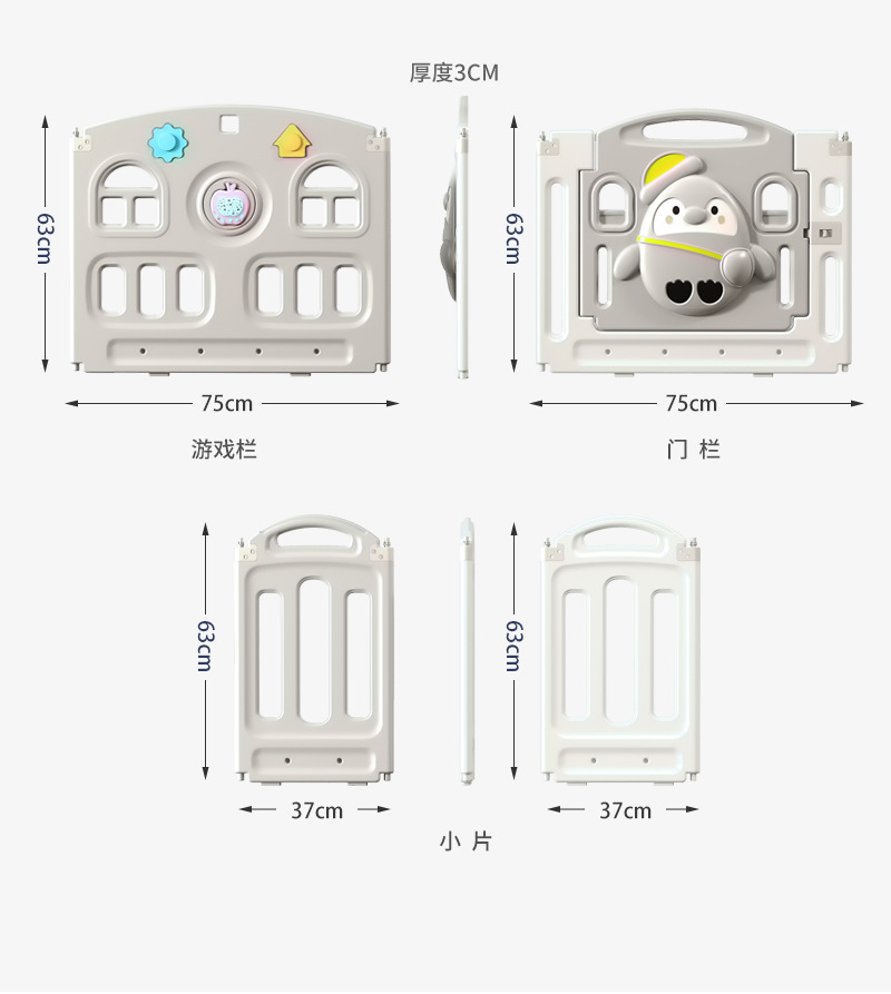 1.5x1.8m gray + swing + rocking horse + storage rack