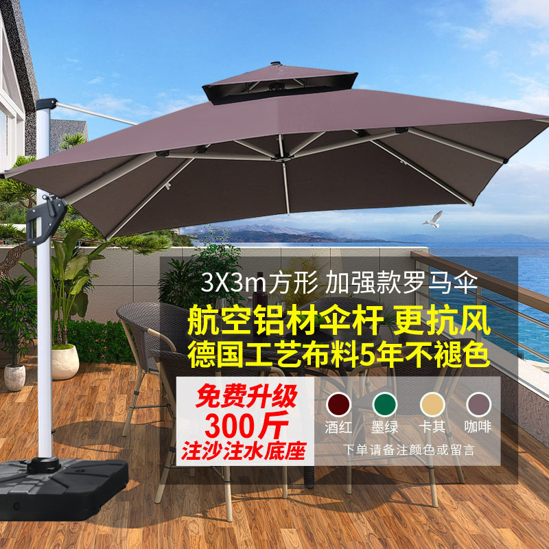 mirror aluminum big umbrella: 3.0 m with 150.00kg water tank with wheels (11cm rod-two-color light bar)