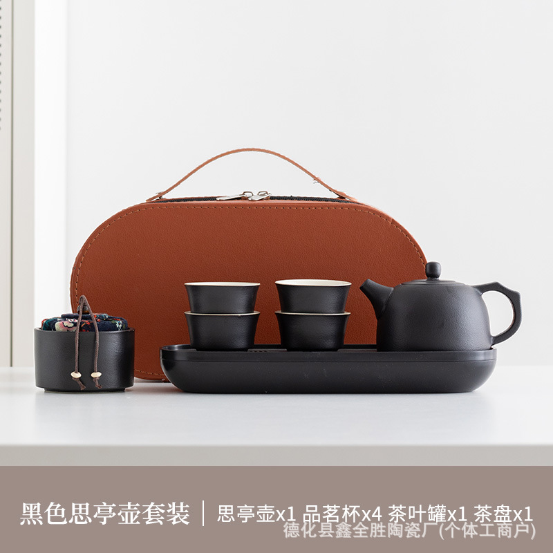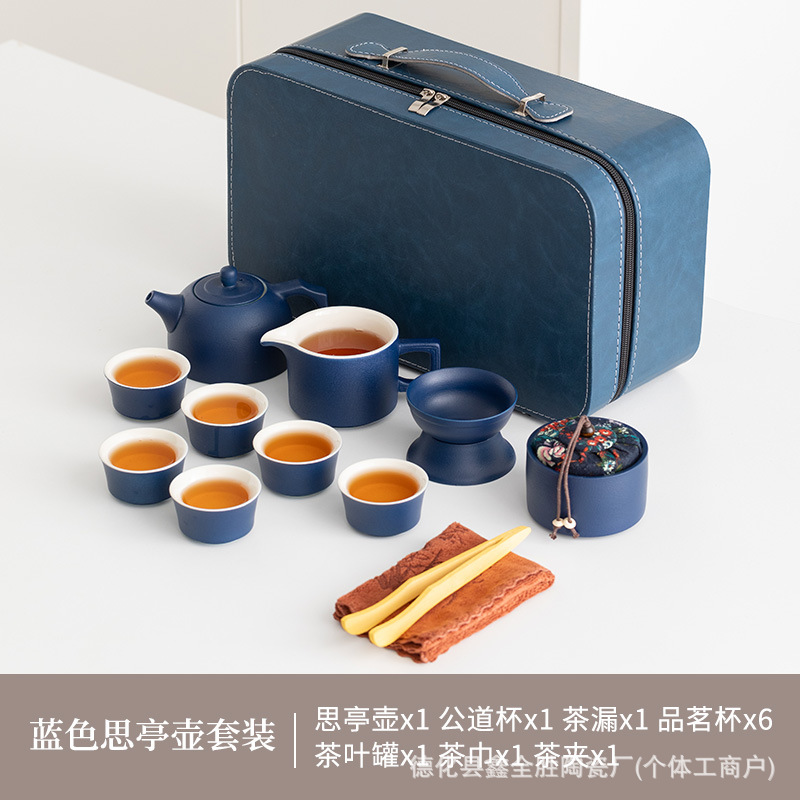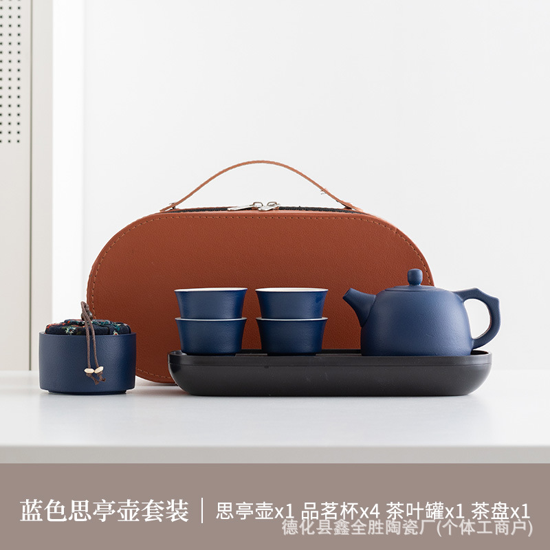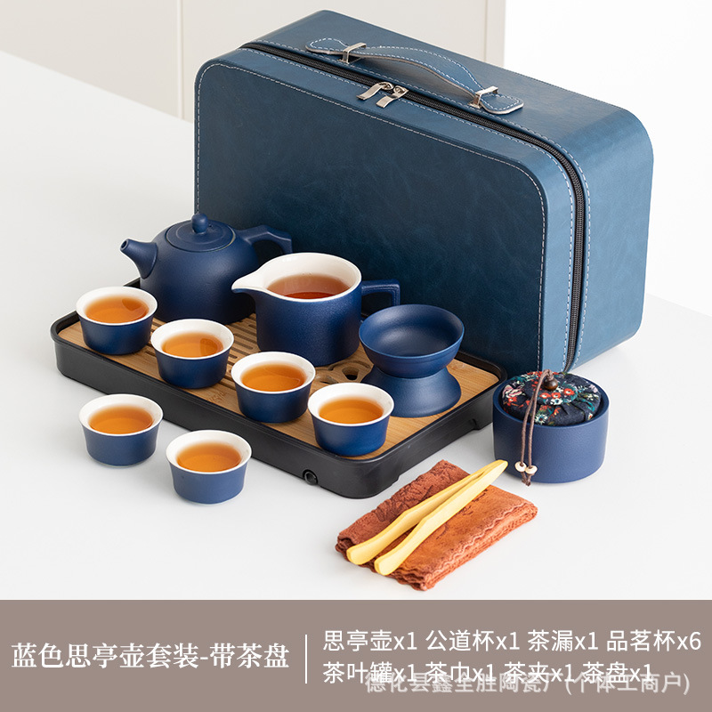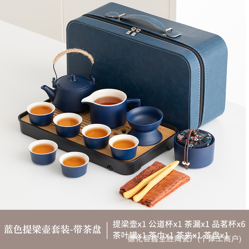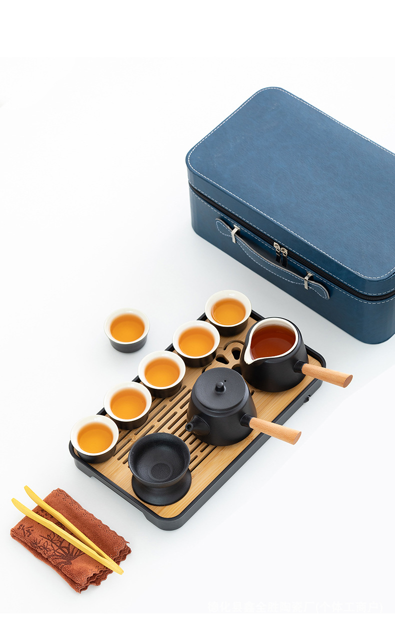black side handle pot suit + tea tray + blue bag