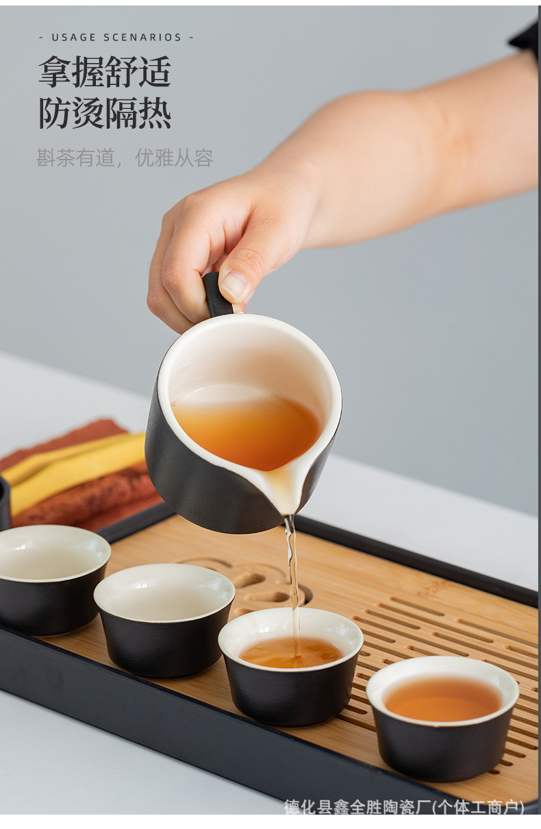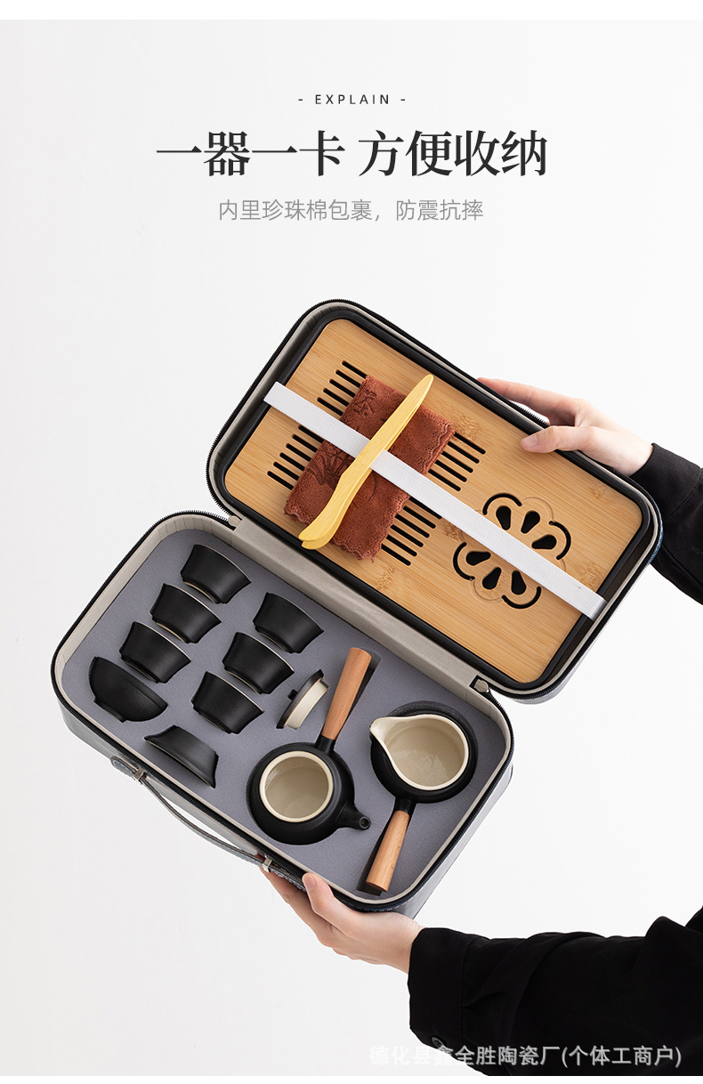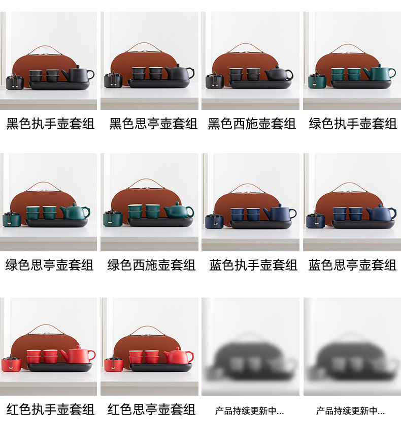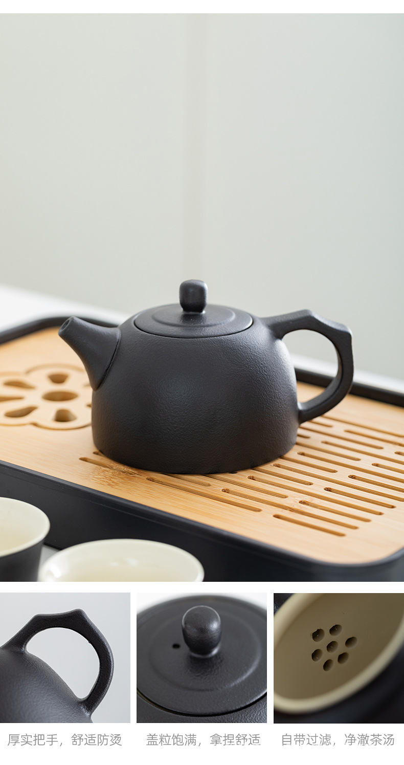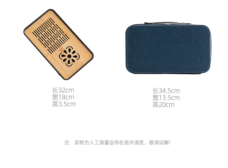 black side handle pot suit + tea tray + blue bag