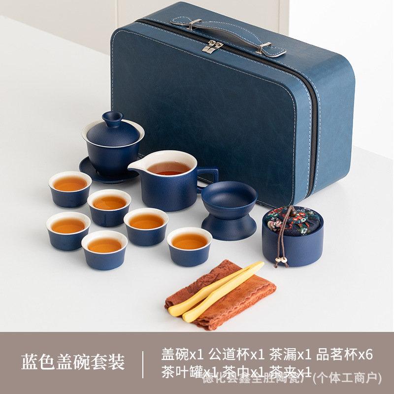 blue gaiwan set + tea tray + blue bag
