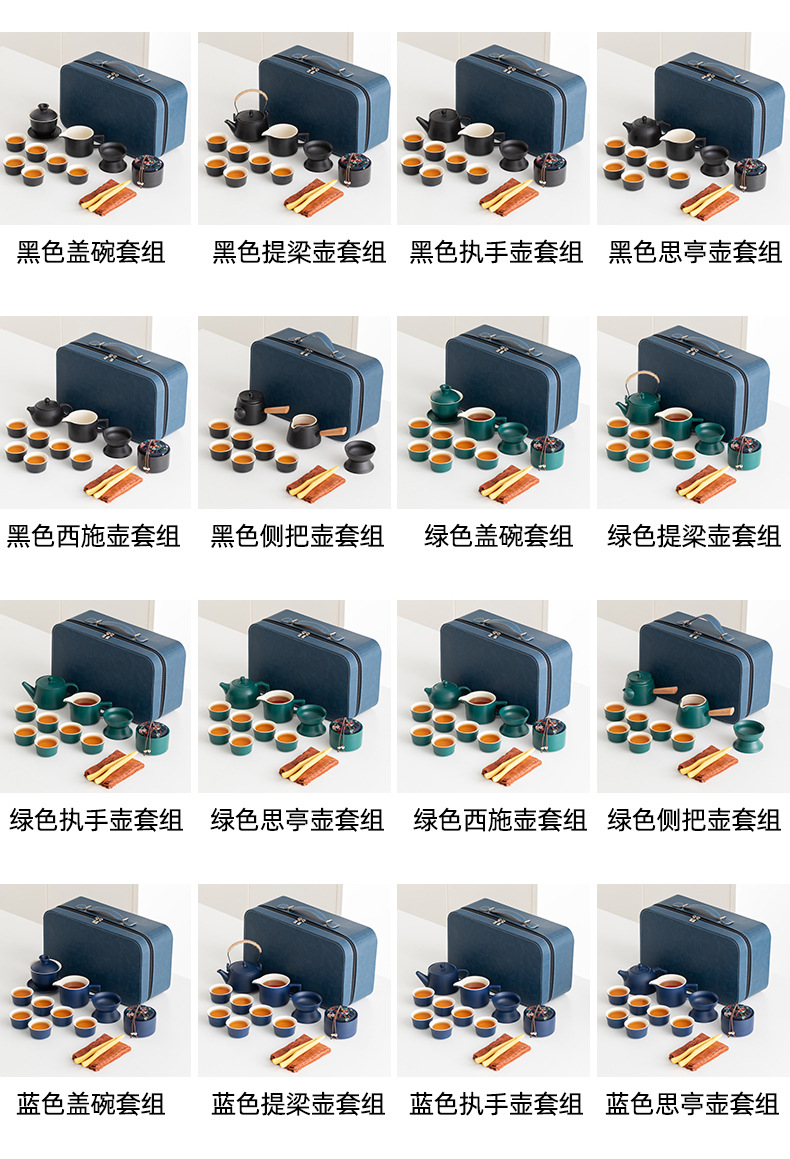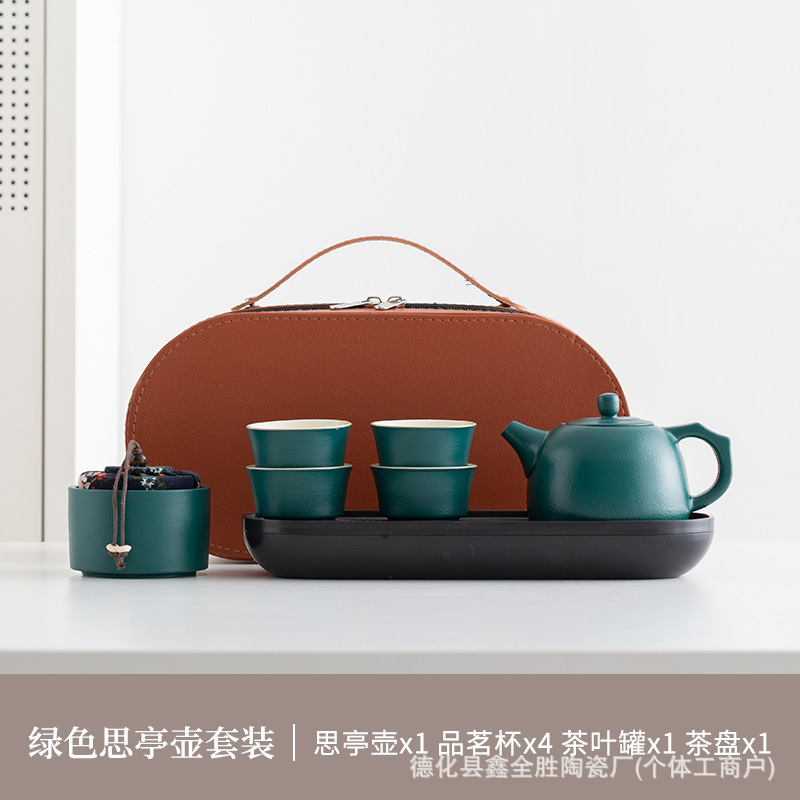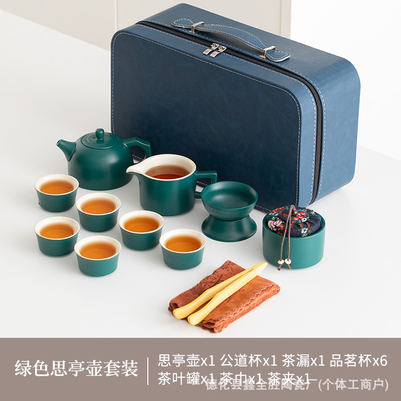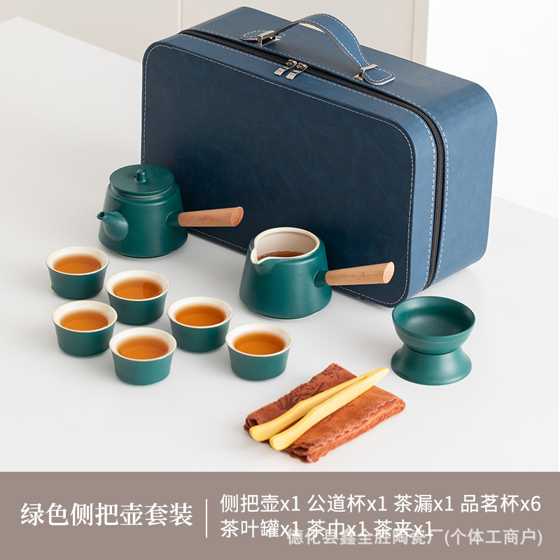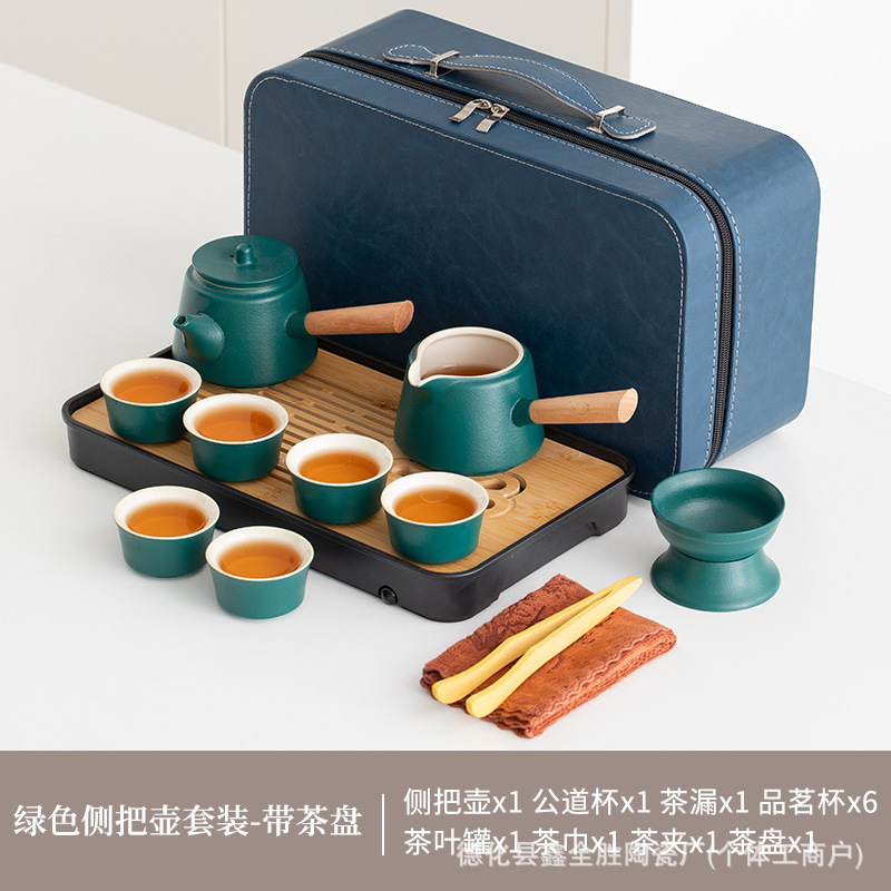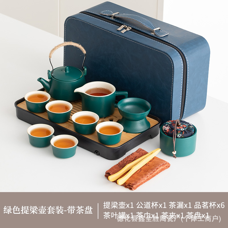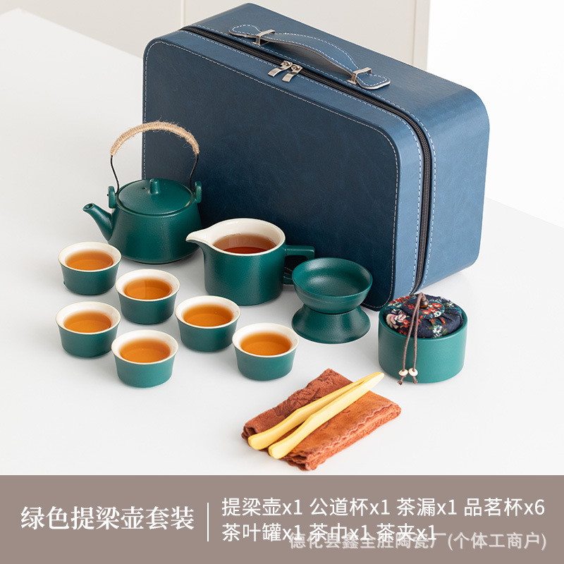 green side handle pot suit + tea tray + blue bag