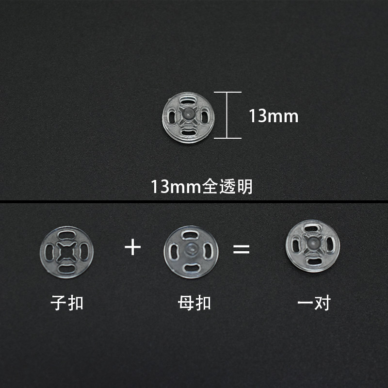 13mm (fully transparent) snap button 50 pairs