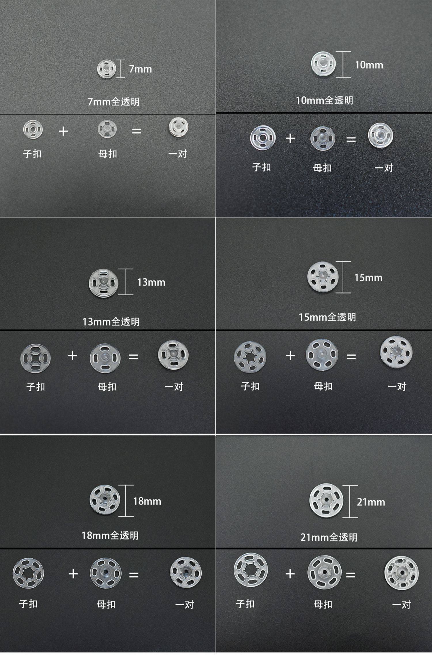 7mm (fully transparent) snap button 100 pairs
