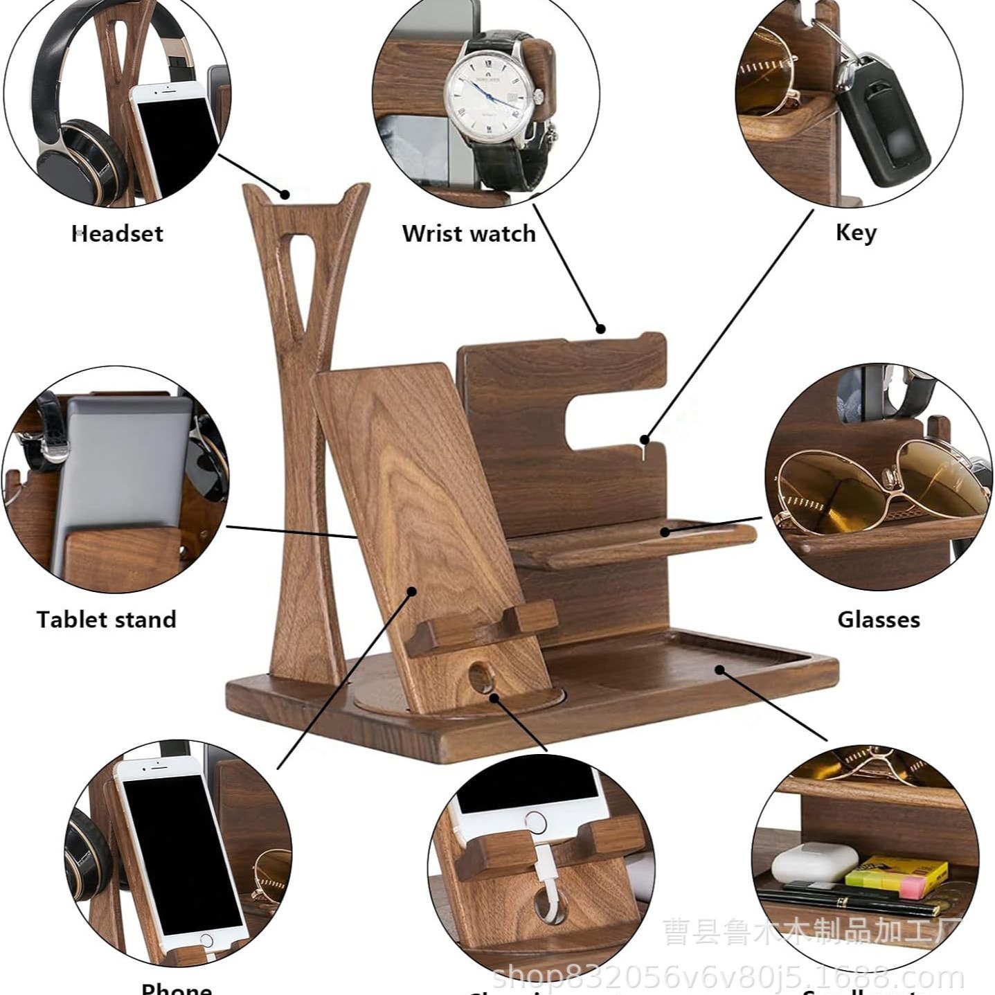 mobile phone extendable shelf cross-border wooden multi-purpose mobile phone holder key storage rack hanging watch headset ornament