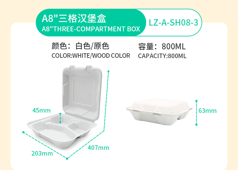 a8 three grid hamburger box (white)
