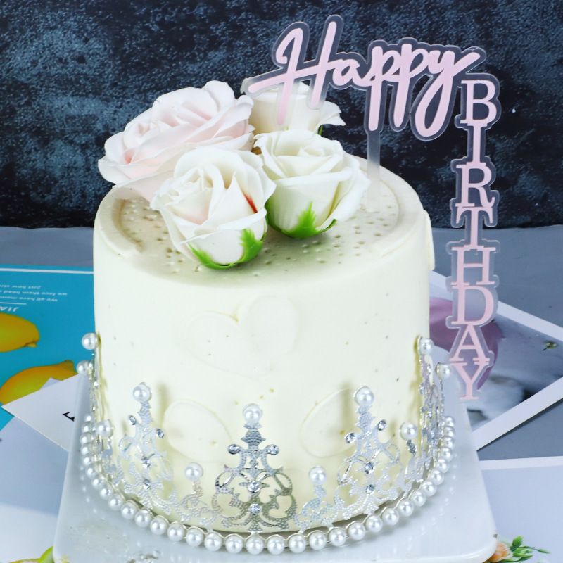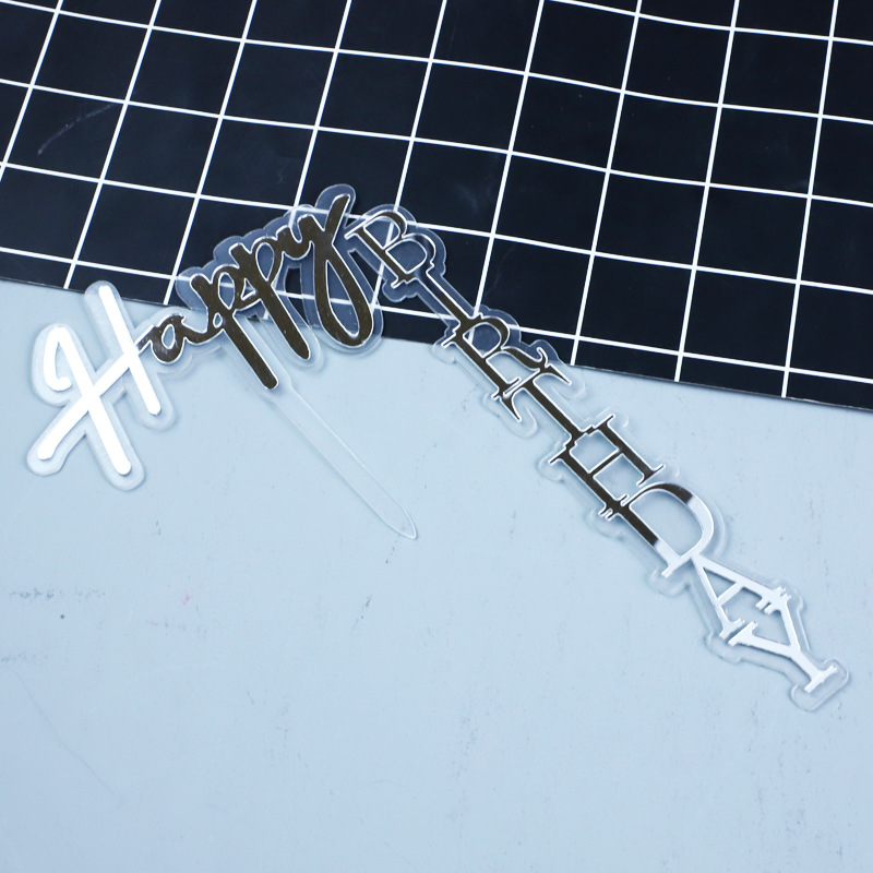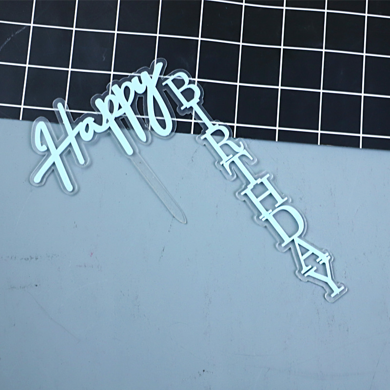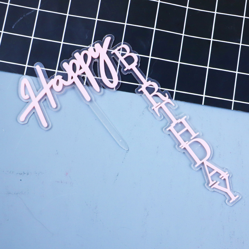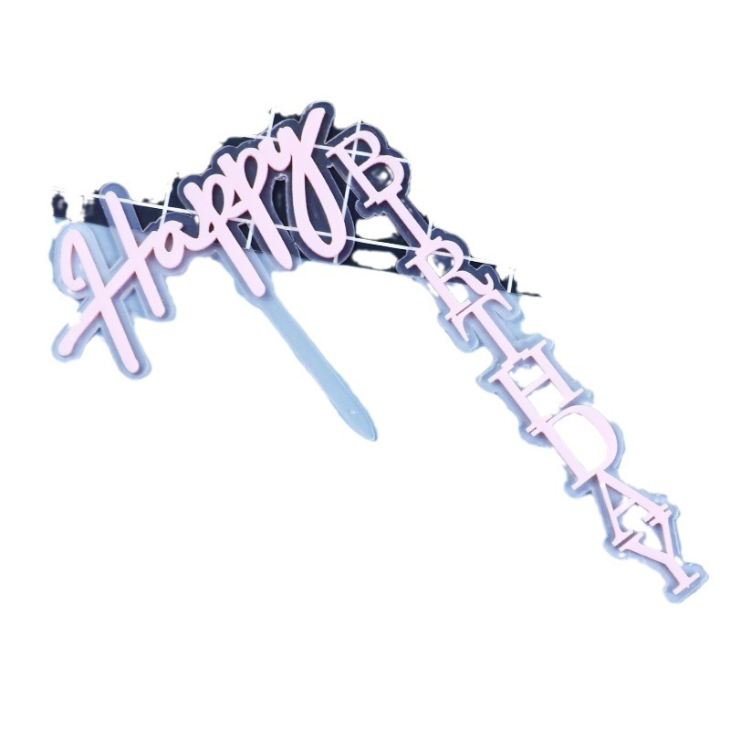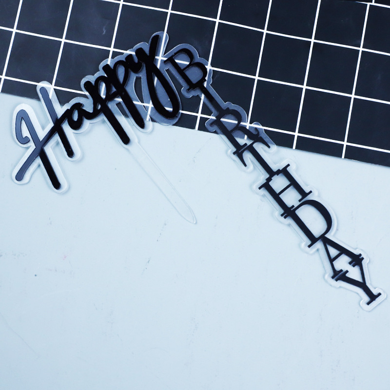 right angle double acrylic cake decoration card black gold baking decoration happy birthday inserts