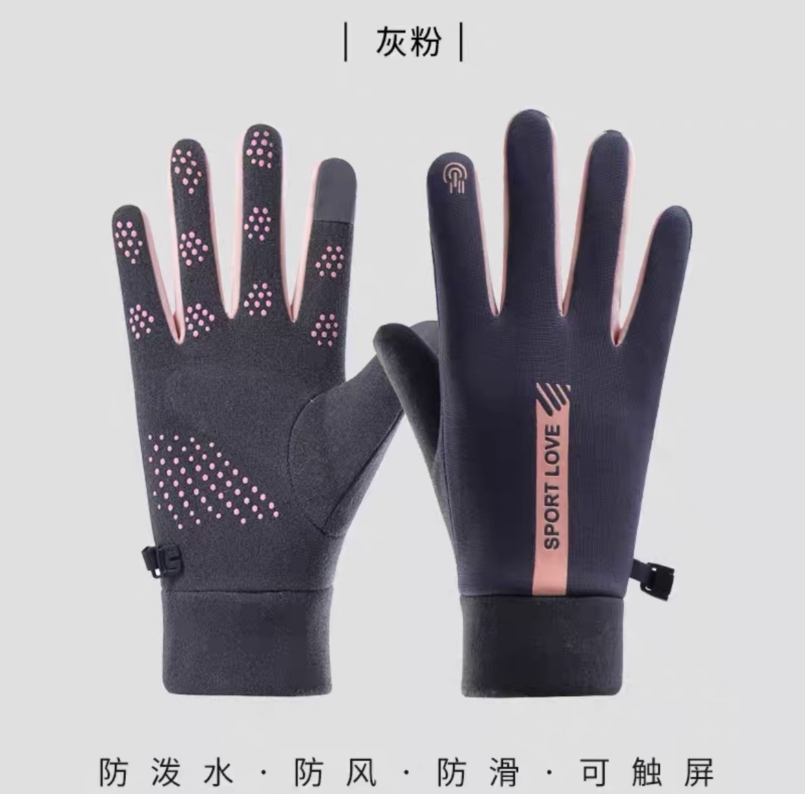 [upgrade dralon thick windproof/two-finger touch screen] women's gray pink