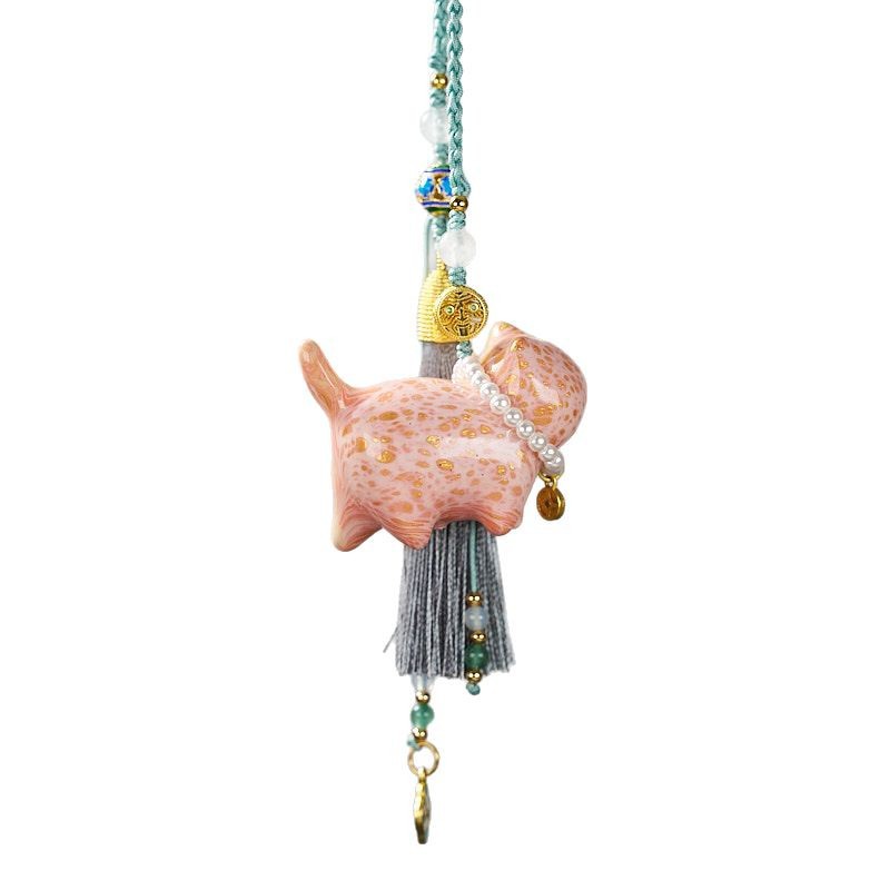 big paint ebony kitten woven god of wealth may good things happen car pendant (random color)