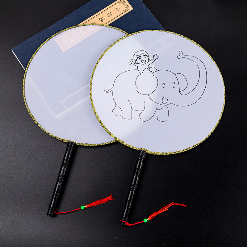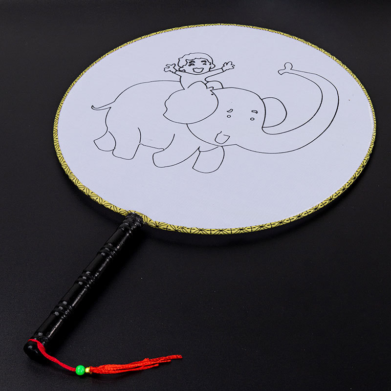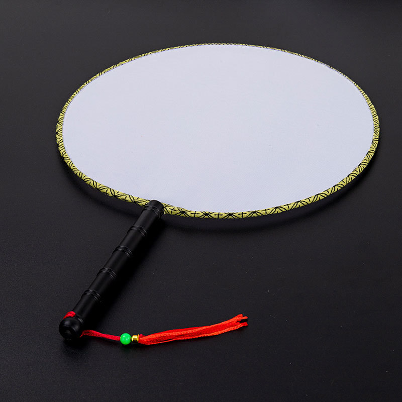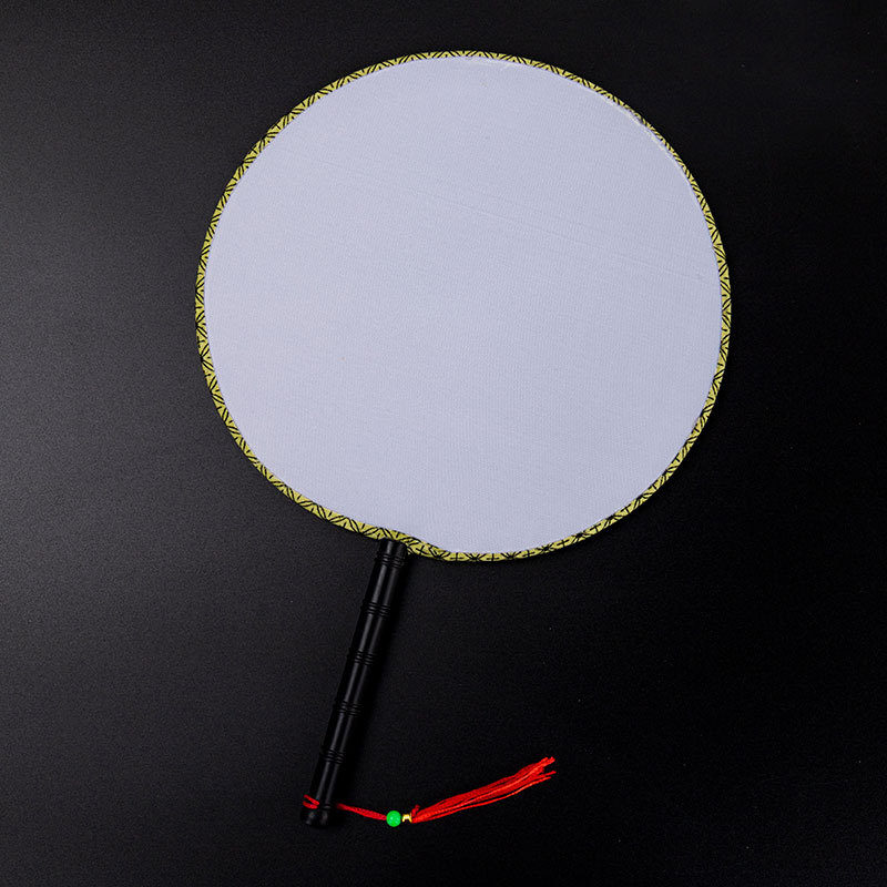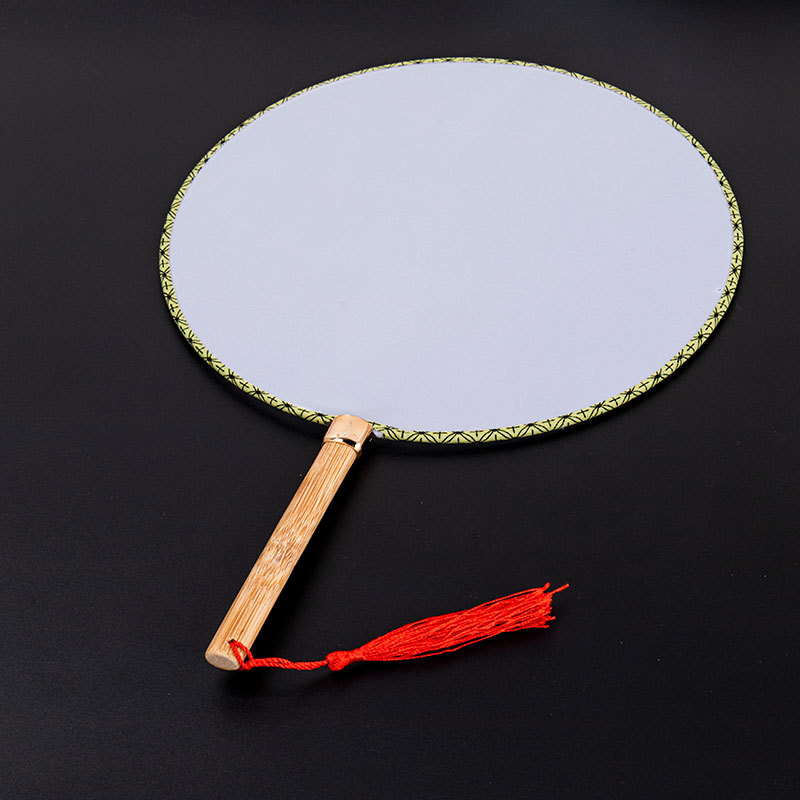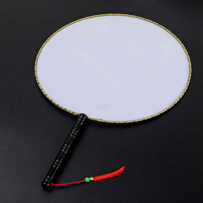 24cm white temple fan, bamboo handle