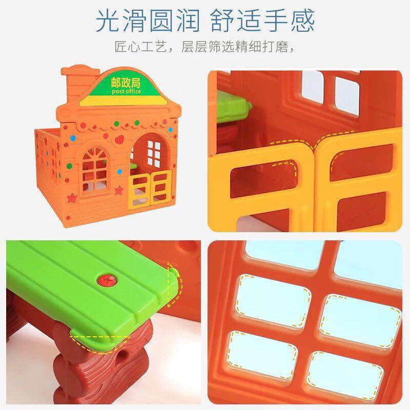 Explanation: The kindergarten is a small house, simulating real life, allowing children to practice by going to the store to buy things and to the food city to eat.Go to the hospital to see a doctor, go to the small post office to send letters, go to the bank to deposit money, go to the barber's to cut hair, and so on.