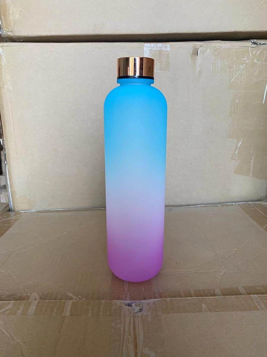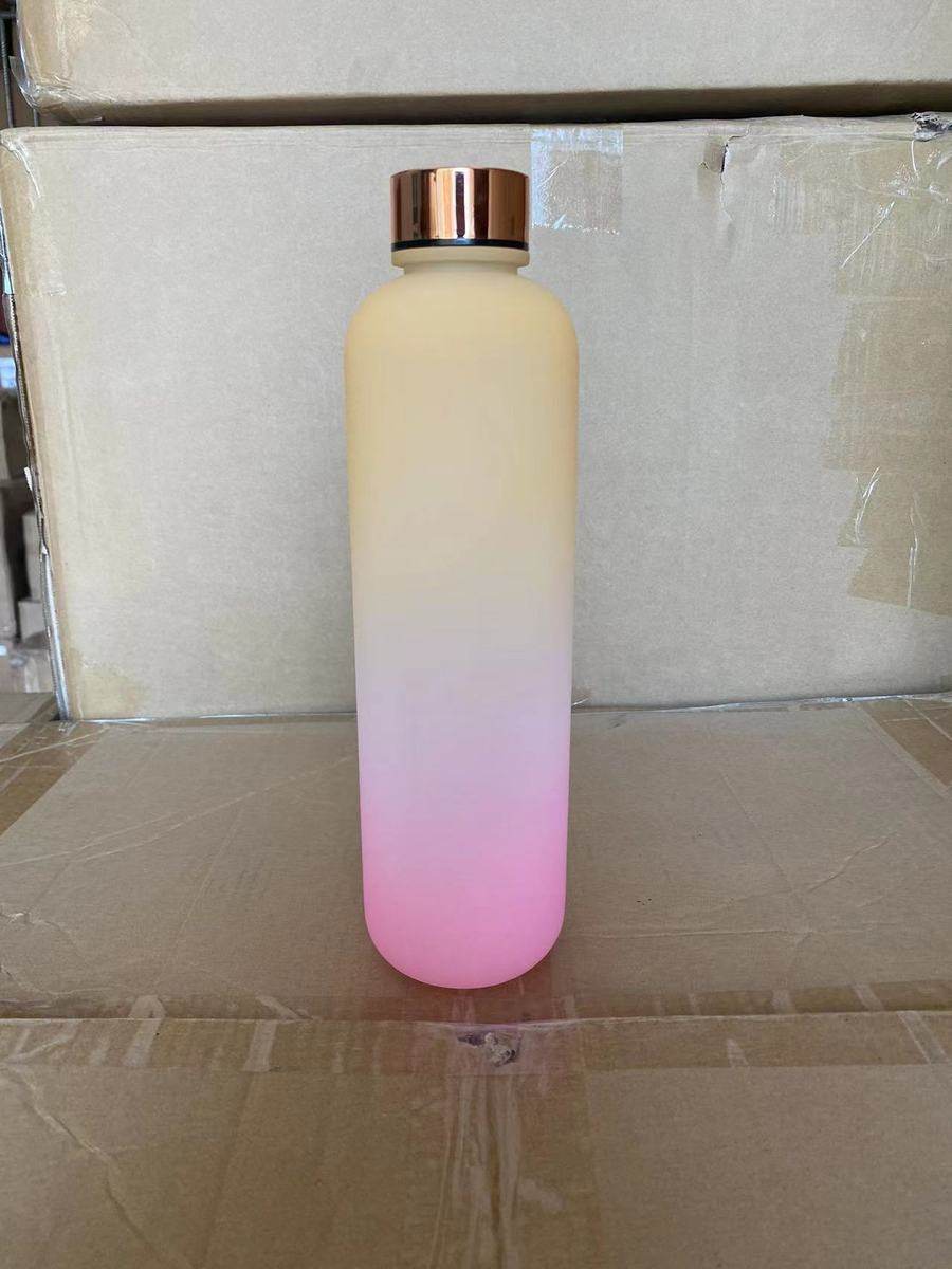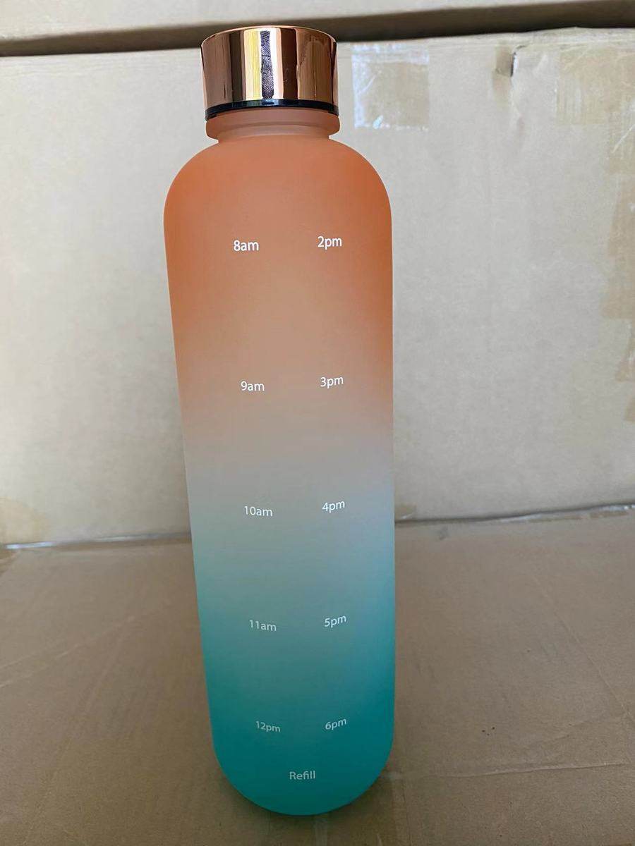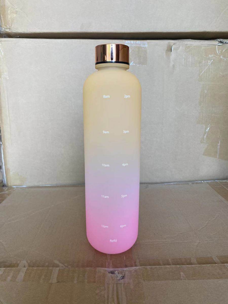 korean style 1000ml gradient color sports bottle fitness sports water bottle plastic tape time scale portable cup