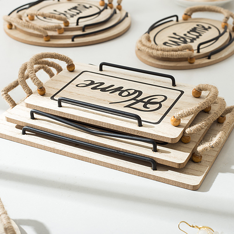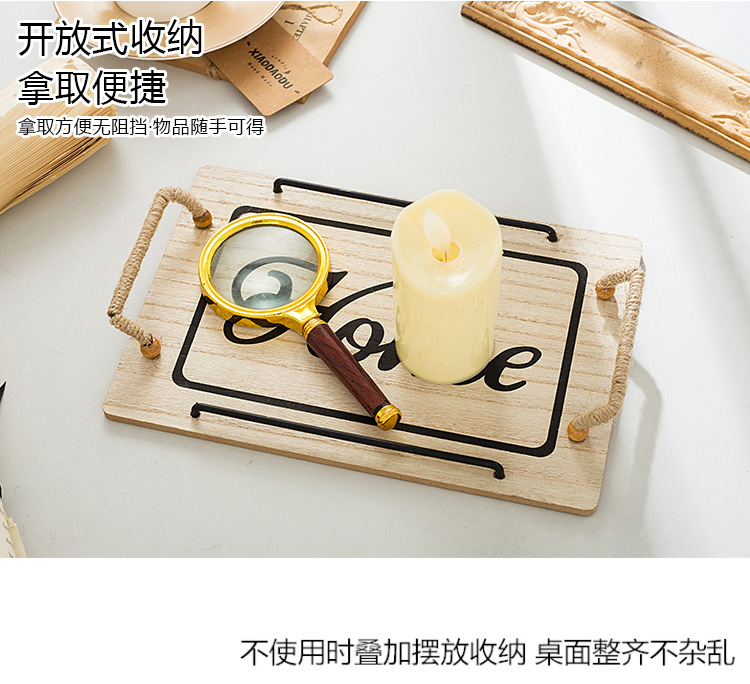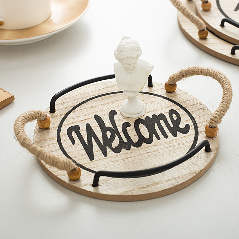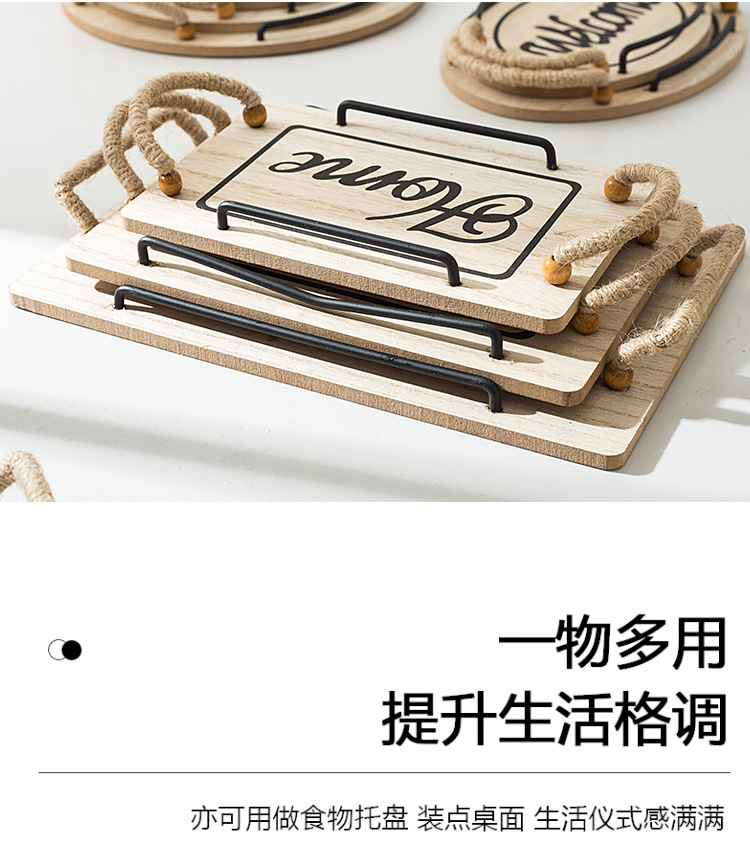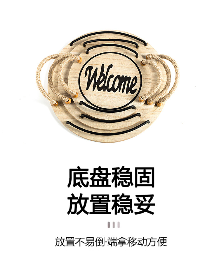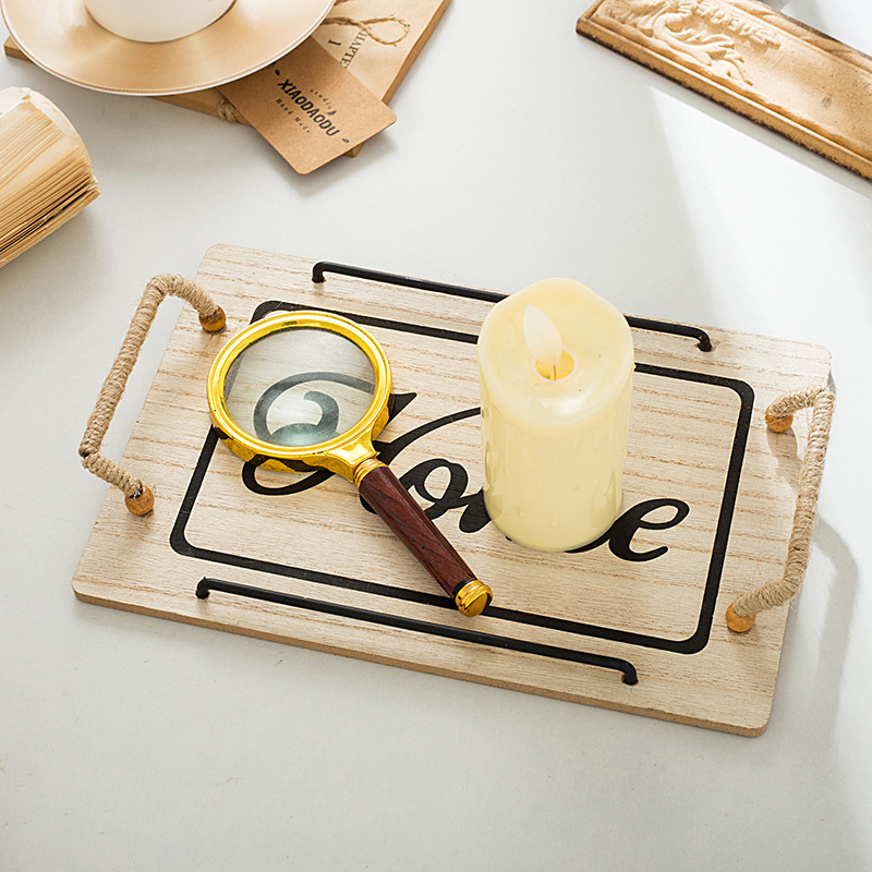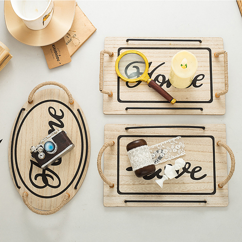 country style oval hemp rope with handle small tea tray wooden tray small tea tray photo shooting decoration
