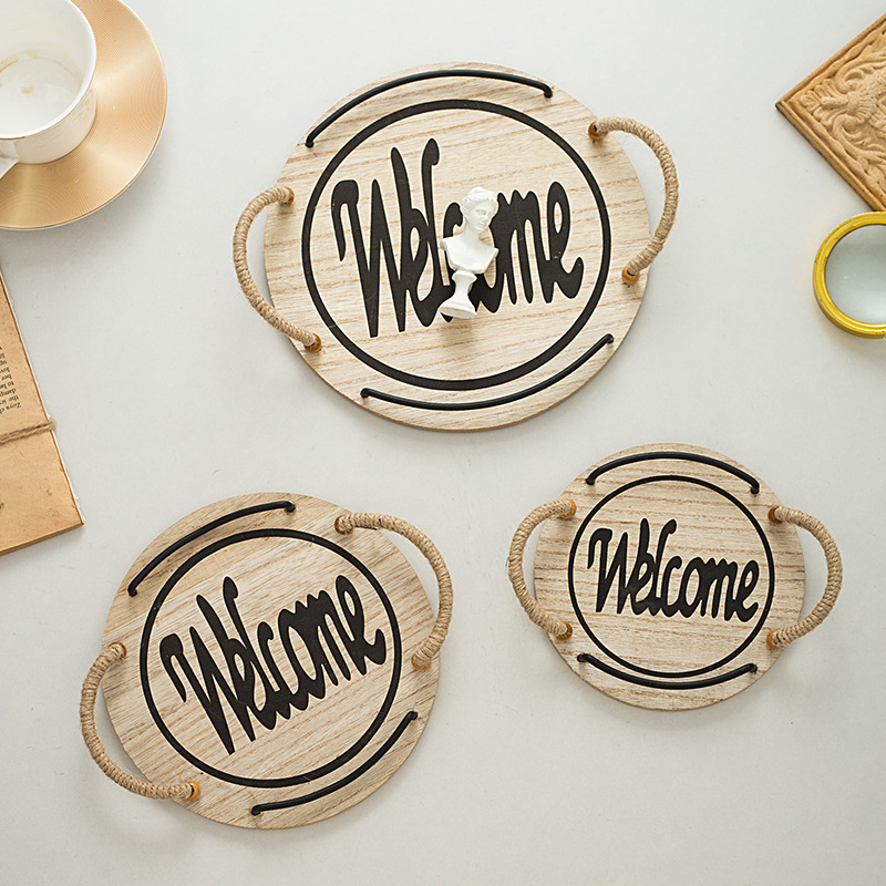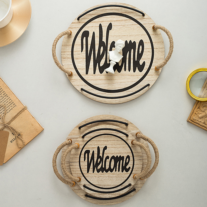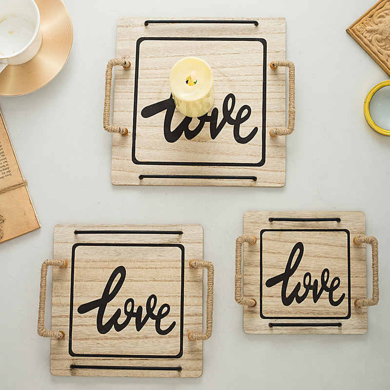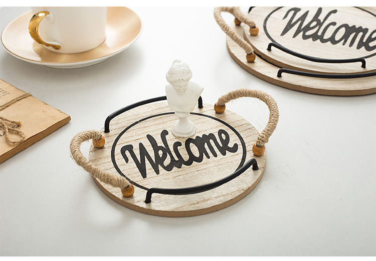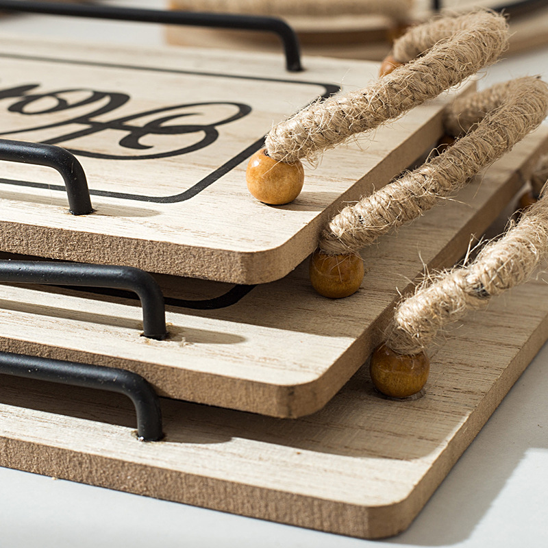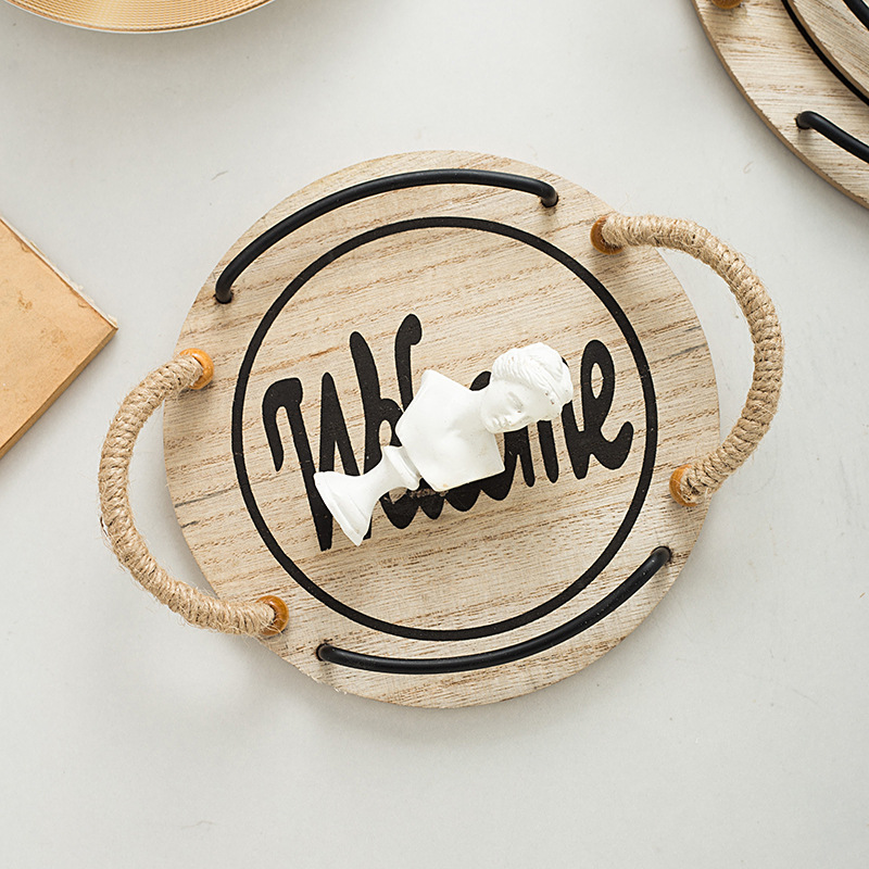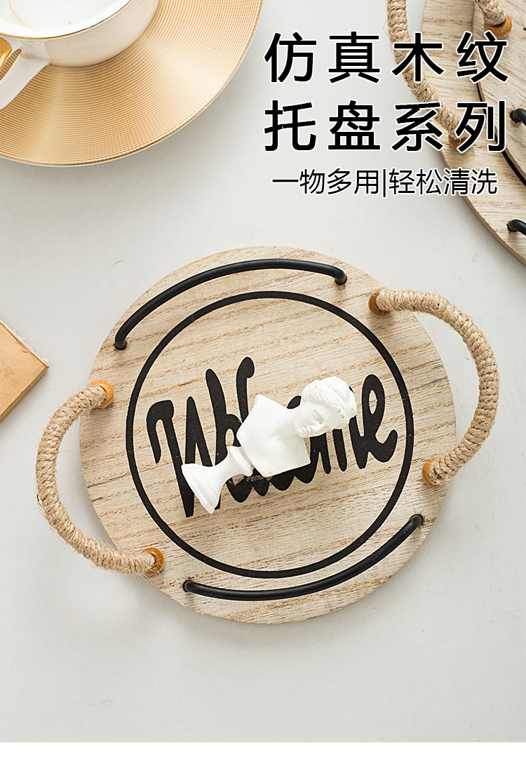 country style oval hemp rope with handle small tea tray wooden tray small tea tray photo shooting decoration