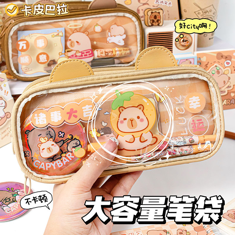 wellcard leather transparent three-layer pencil case 3371