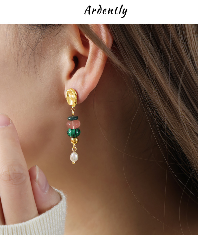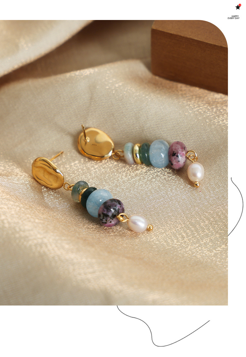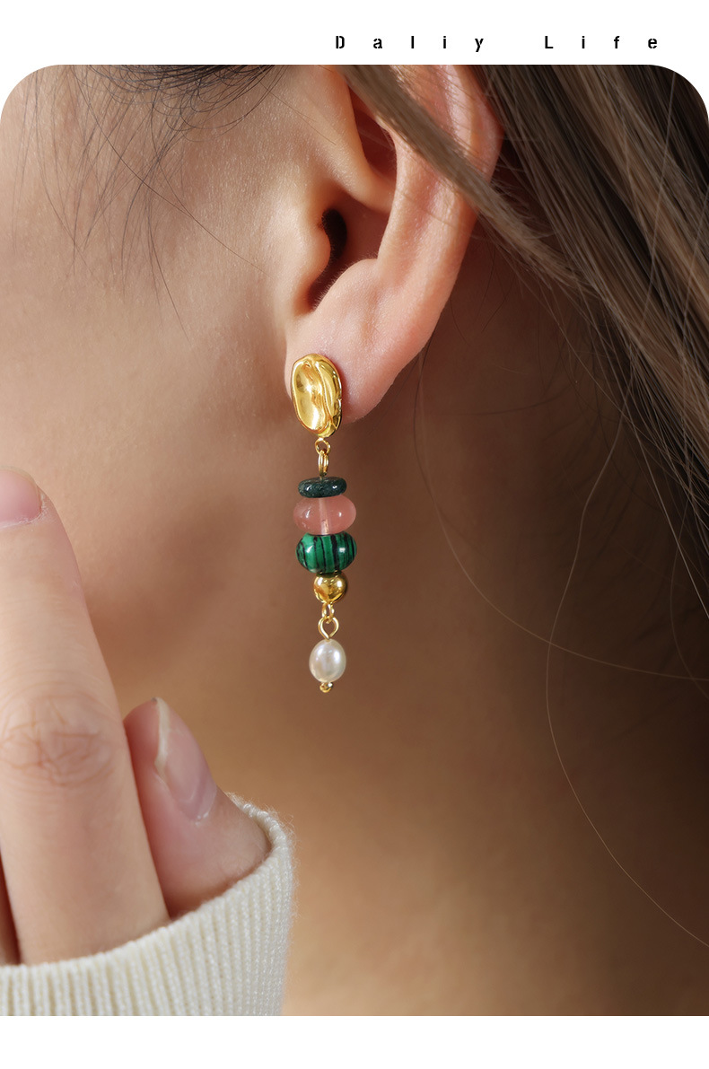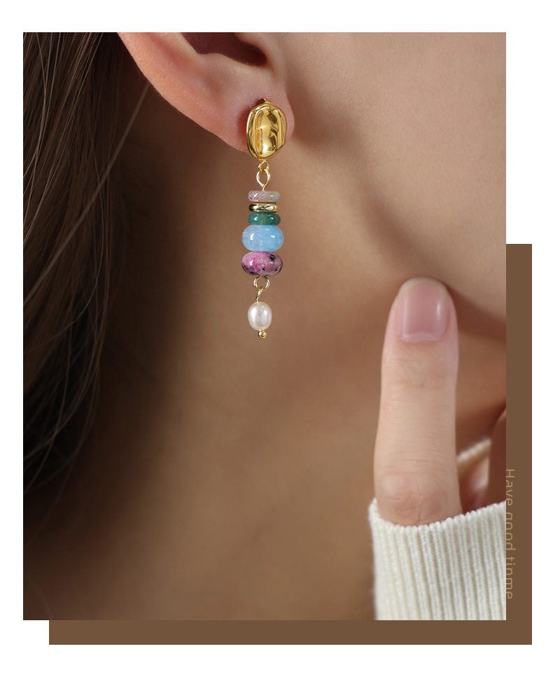 Bohemian Style Fashionable All Match Jewelry Natural Stone Beaded Pearl Titanium Steel Earrings Dopamine Wear Match