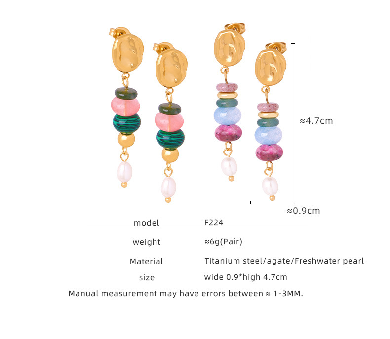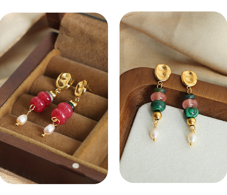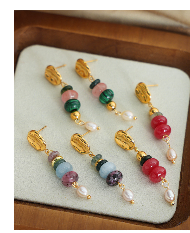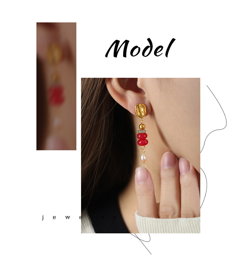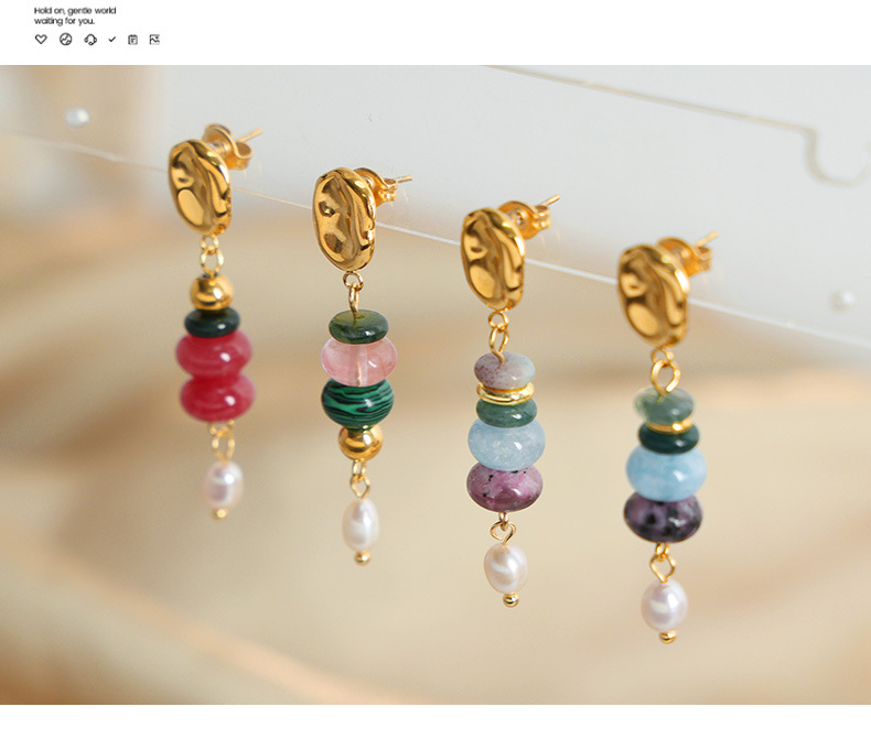 Bohemian Style Fashionable All Match Jewelry Natural Stone Beaded Pearl Titanium Steel Earrings Dopamine Wear Match