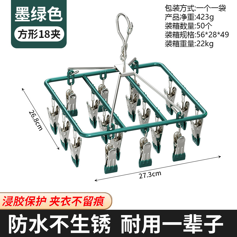 plastic dipping square socks rack 18 clip (dark green)