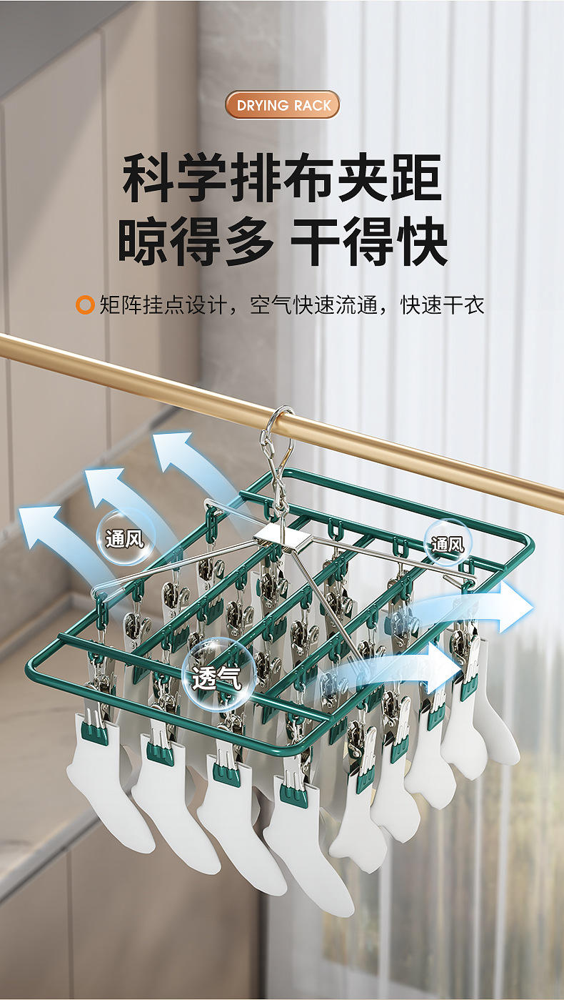 plastic dipping square socks rack 28 clip (dark green)