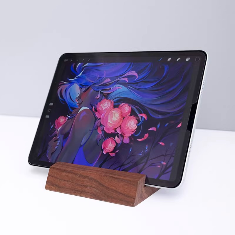 retro walnut solid wood tablet computer stand desktop creativity computer mobile phone holder shelf lazy storage rack