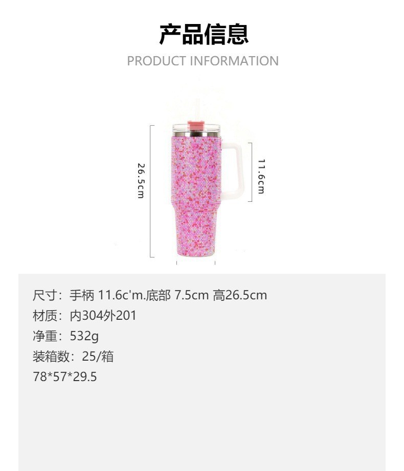 cross-border second generation 40oz cup large diamond handle vacuum cup large capacity vacuum double-layer portable large ice cup