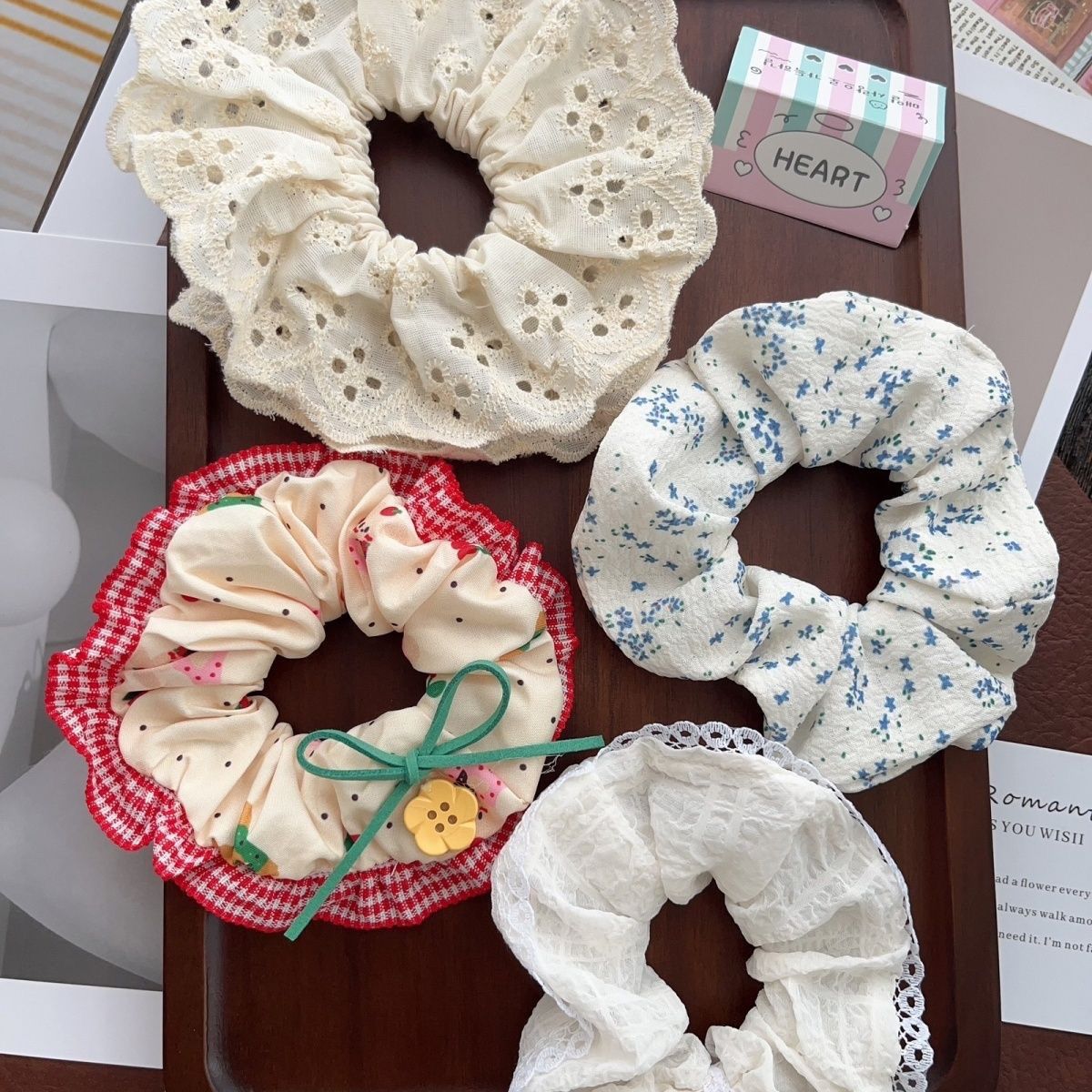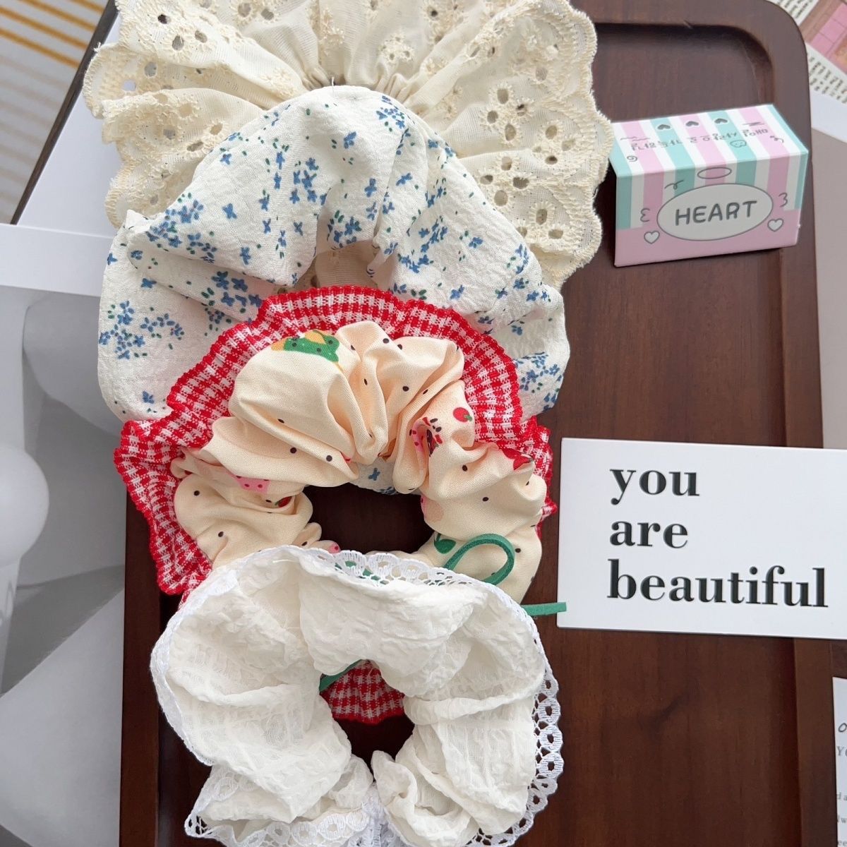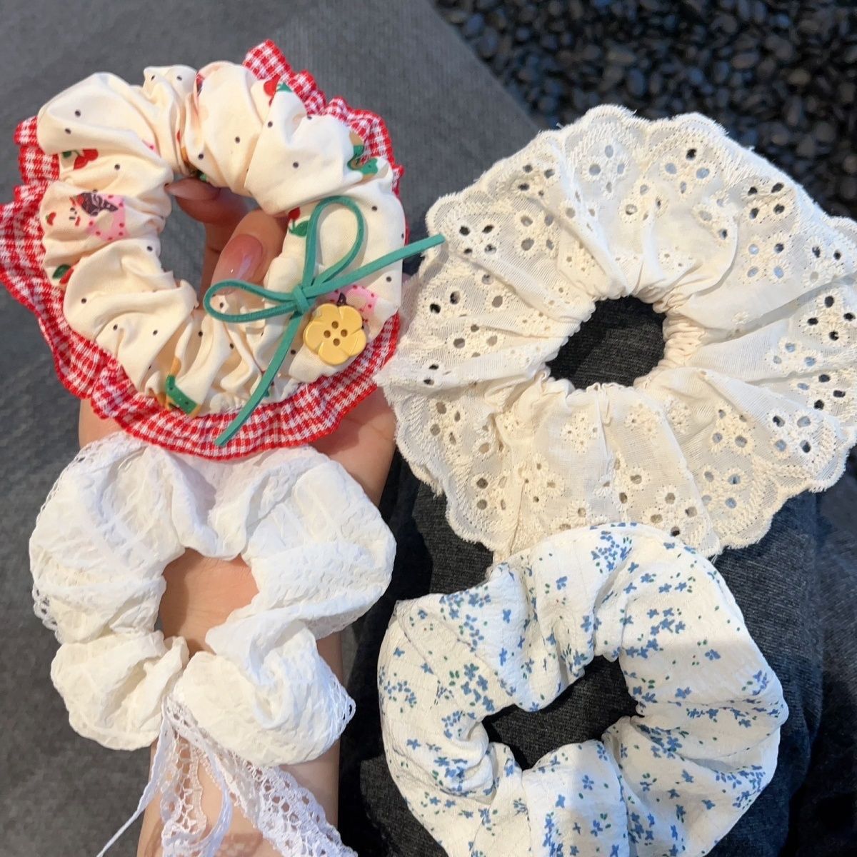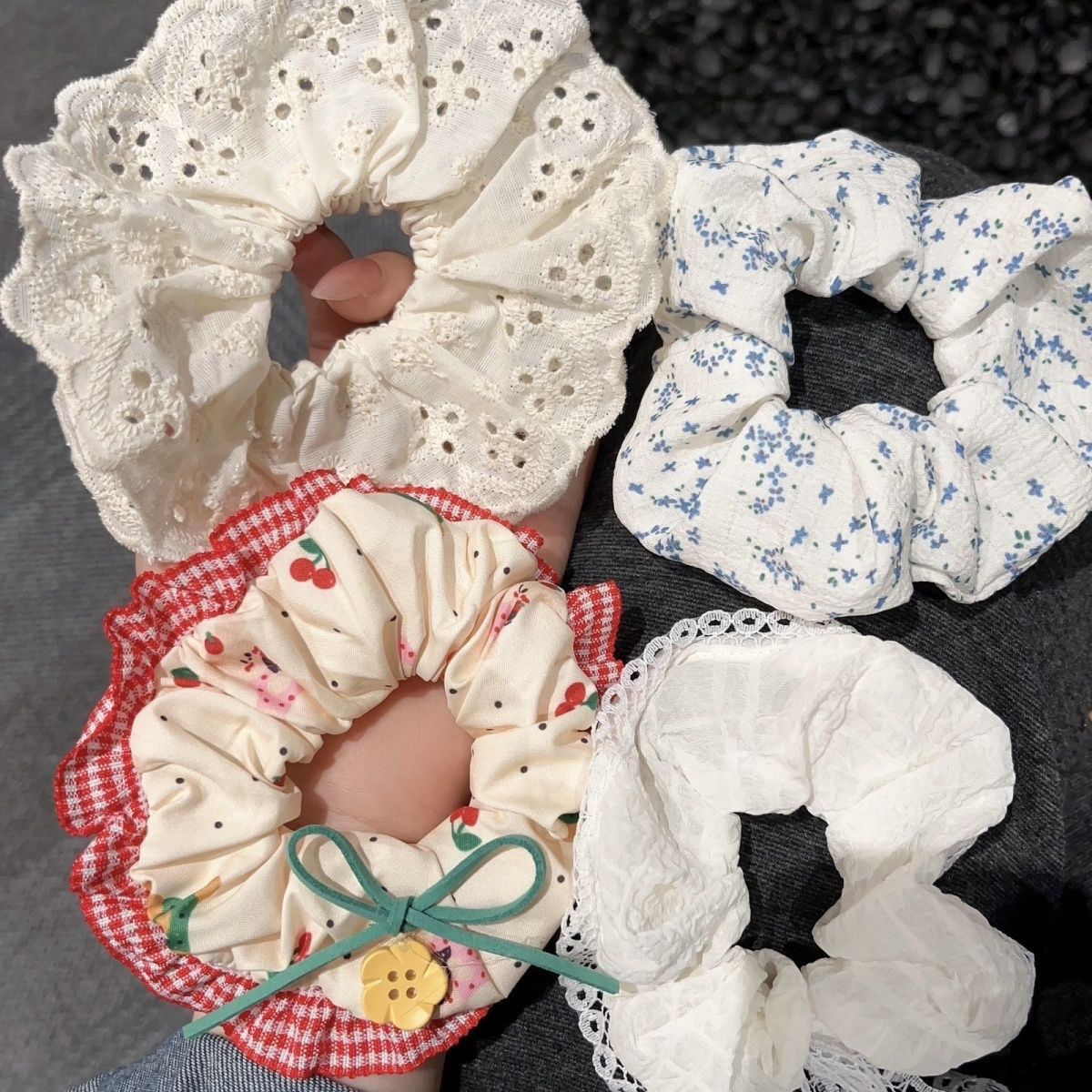 | beige lace hair band + blue small floral | CN¥ 8.82 | 999999 piece available |
