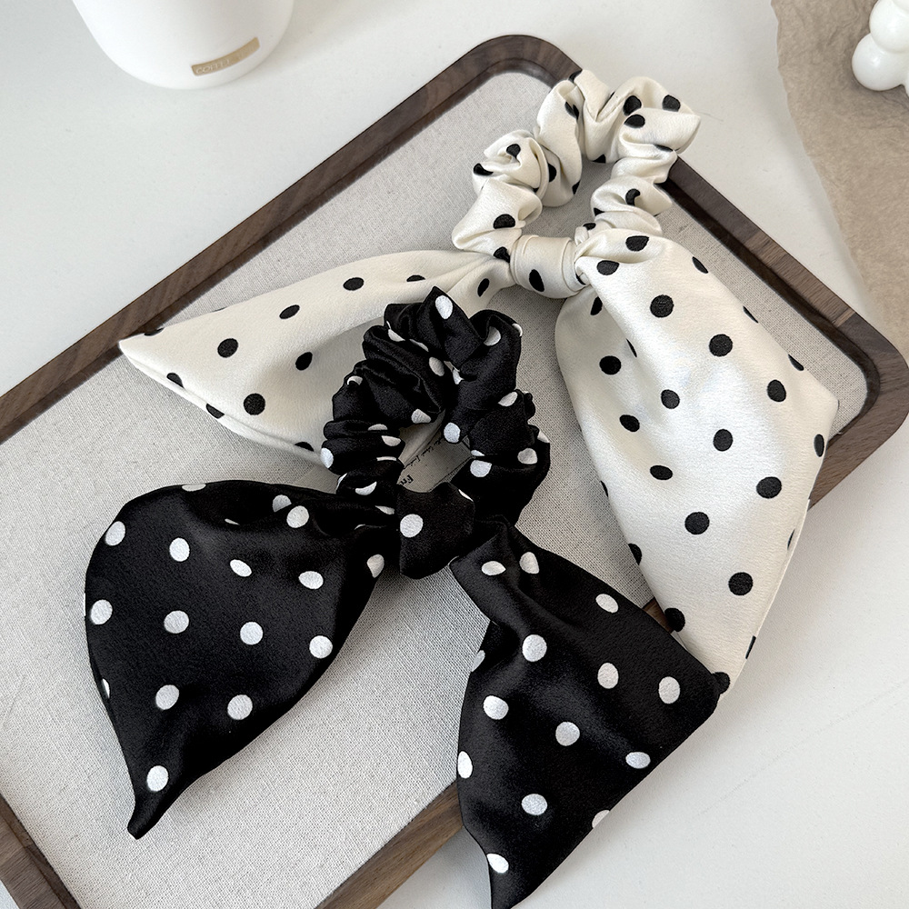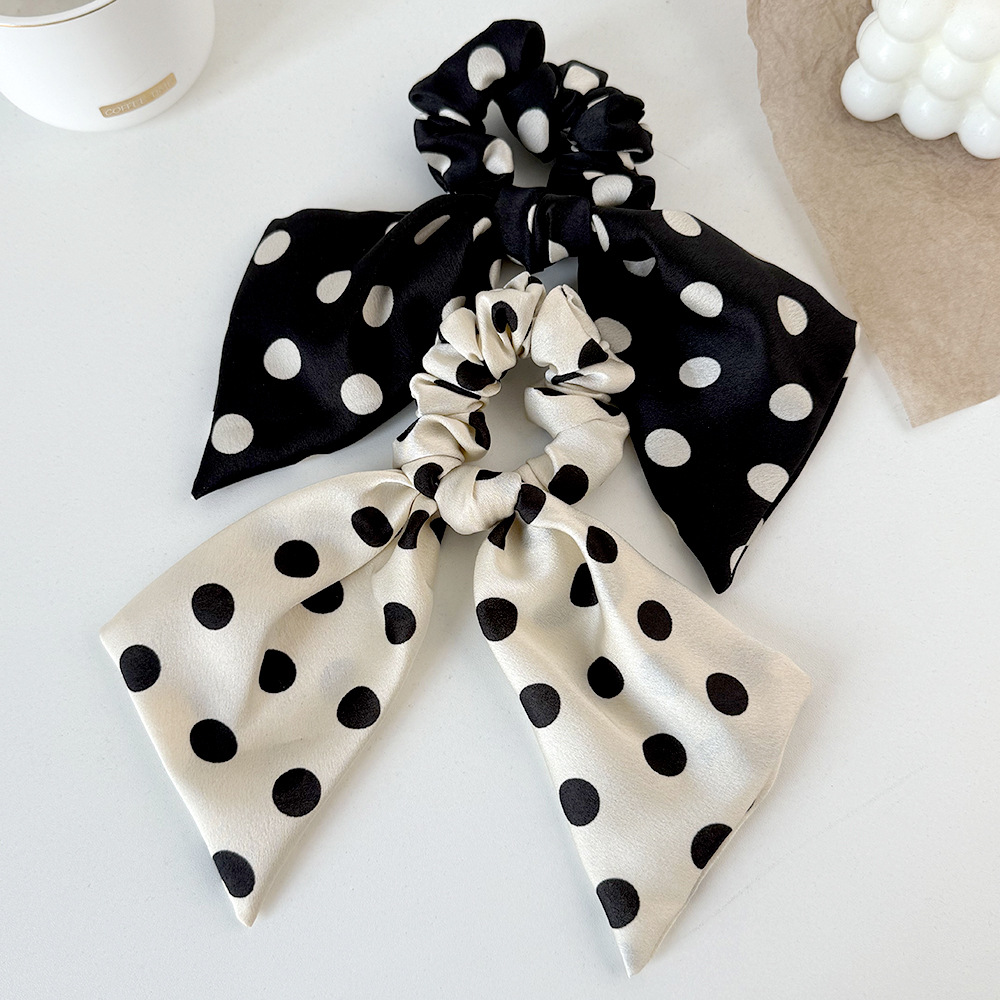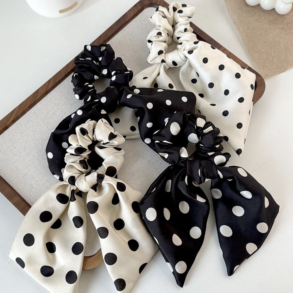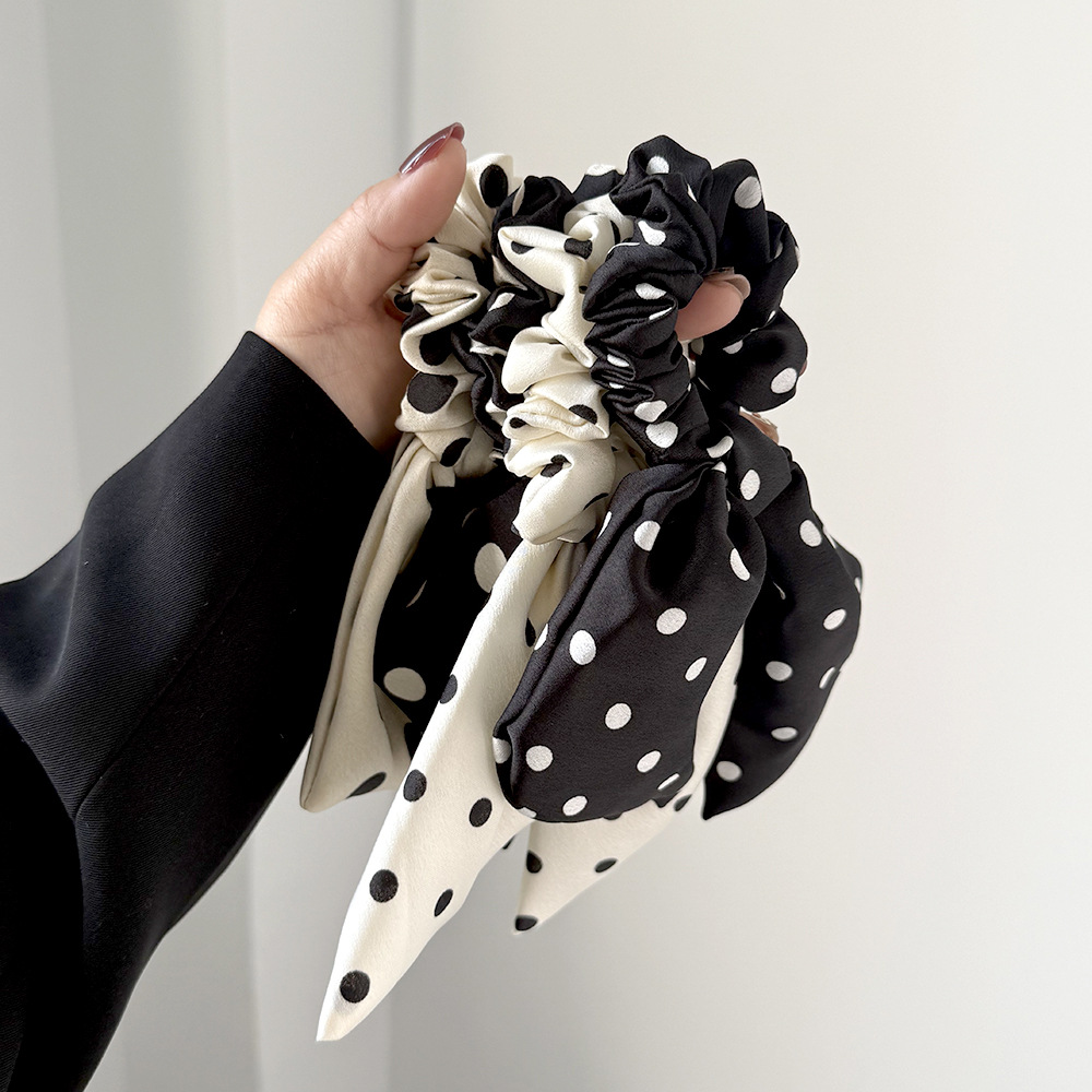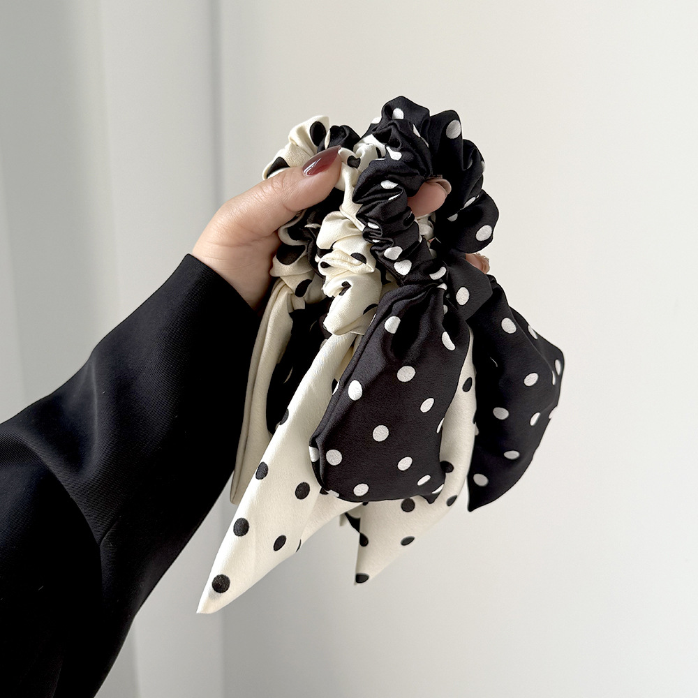 korean style black and white polka dot fabric large intestine hair band ribbon all-match bow hair rope head rope headdress wholesale