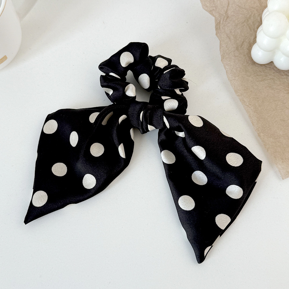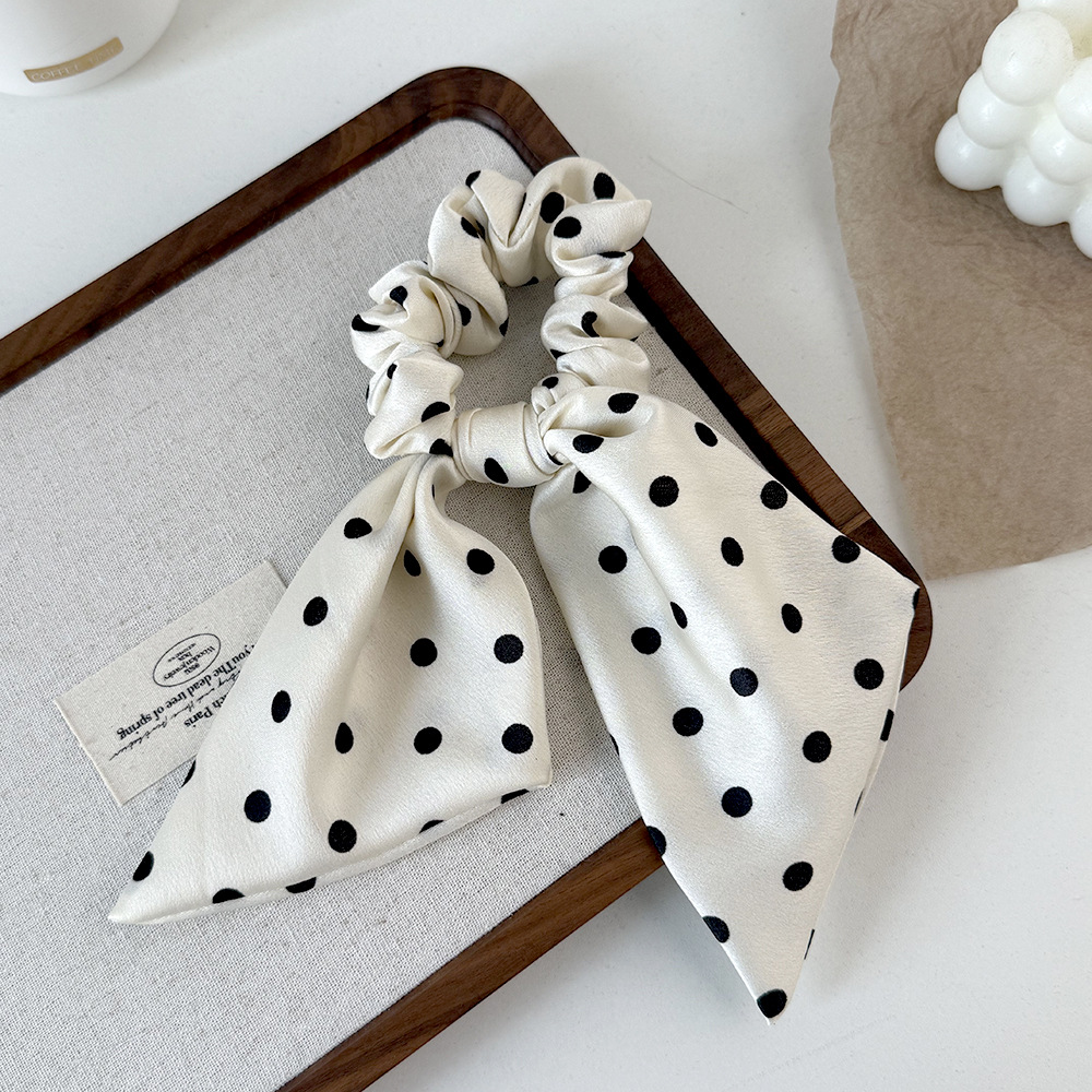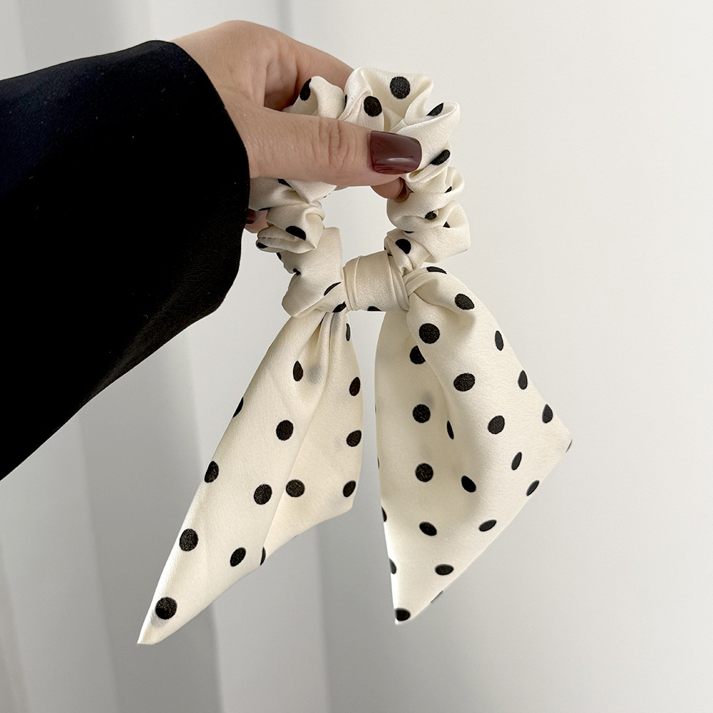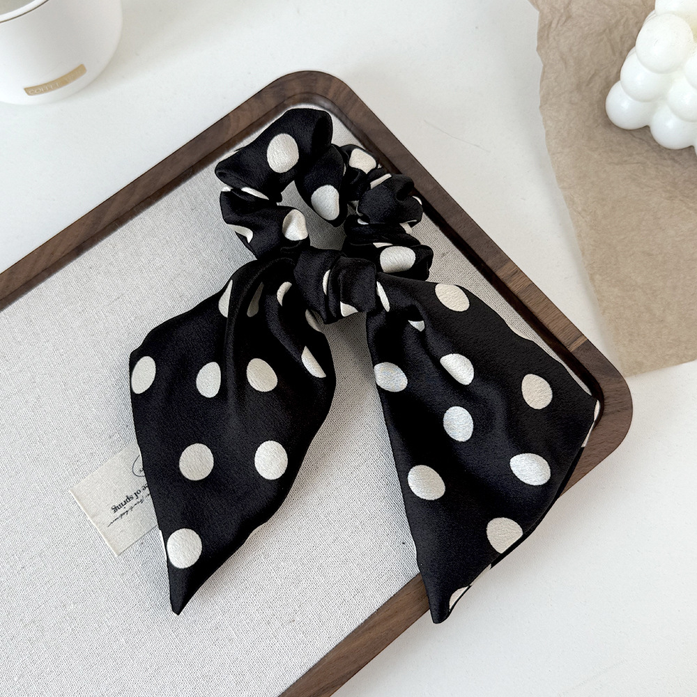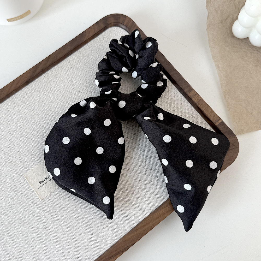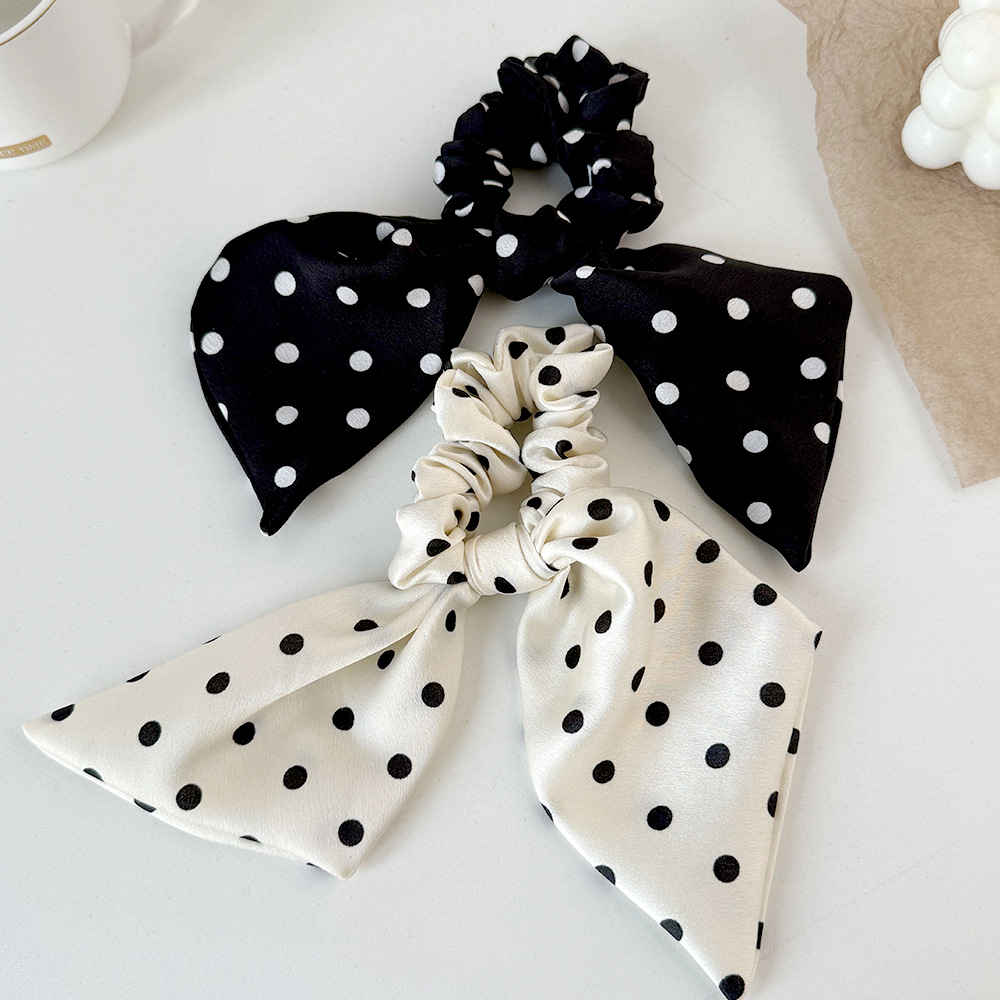 korean style black and white polka dot fabric large intestine hair band ribbon all-match bow hair rope head rope headdress wholesale