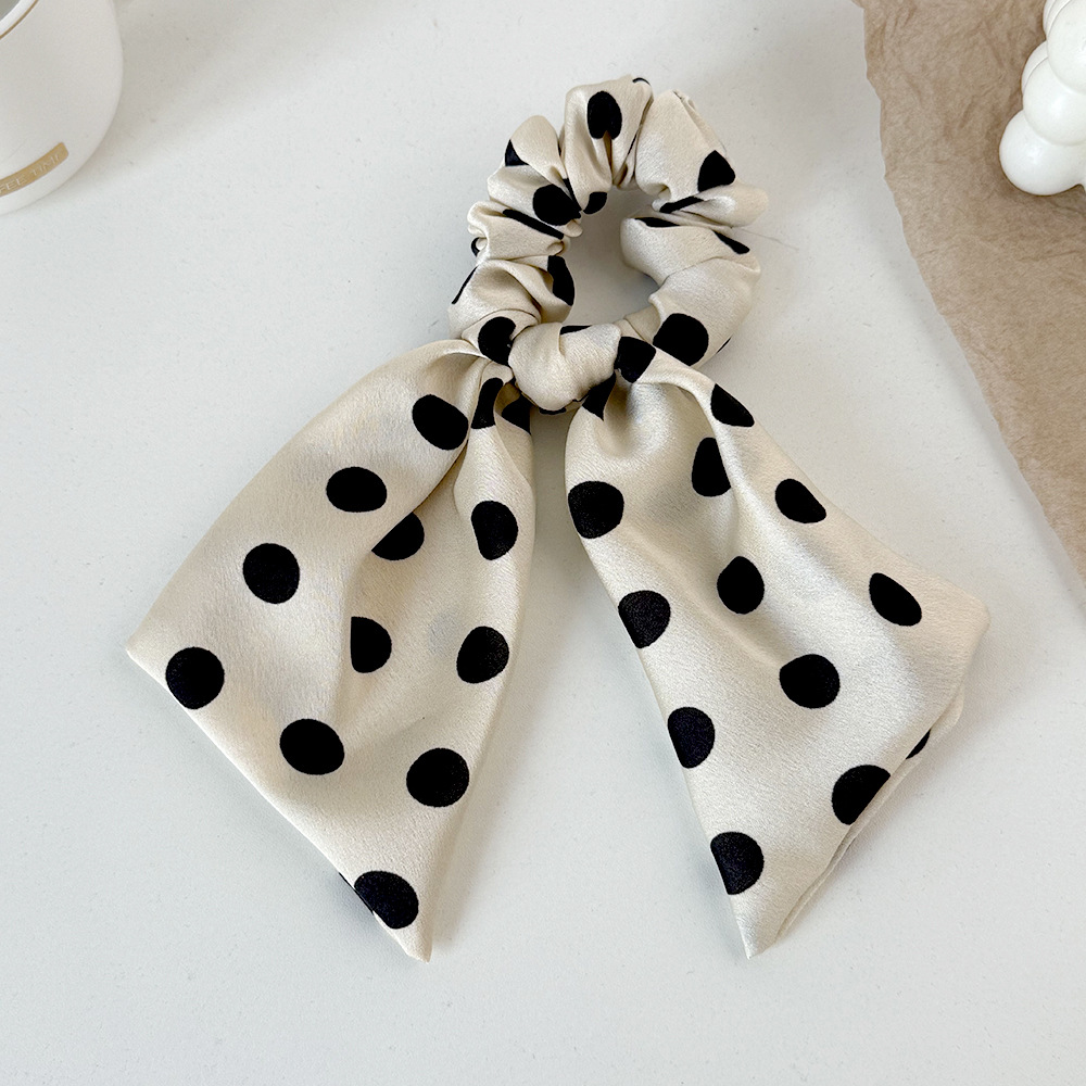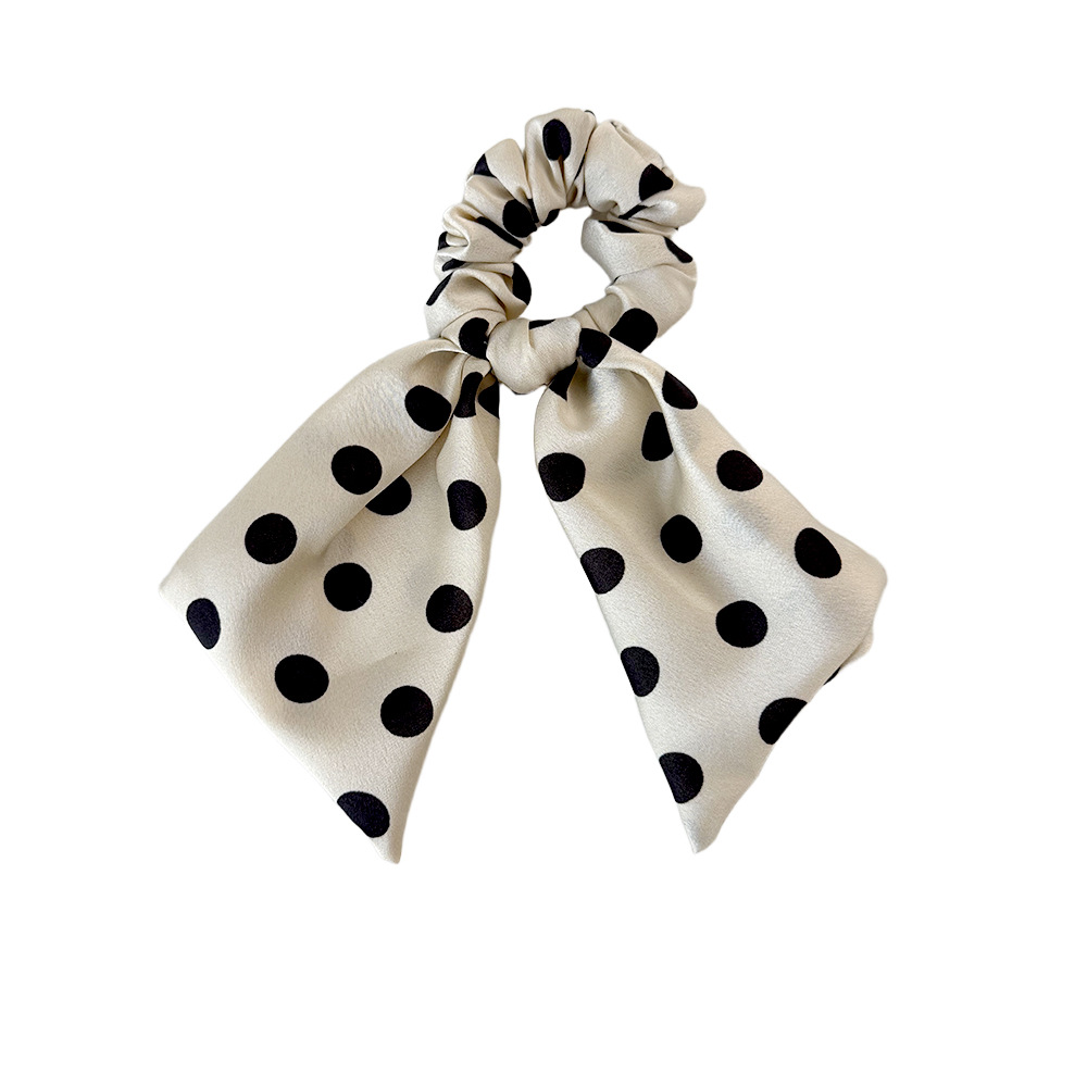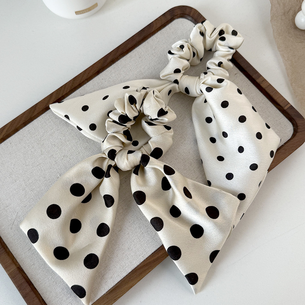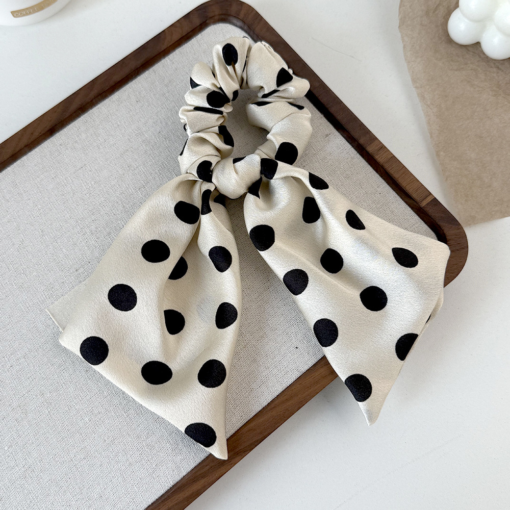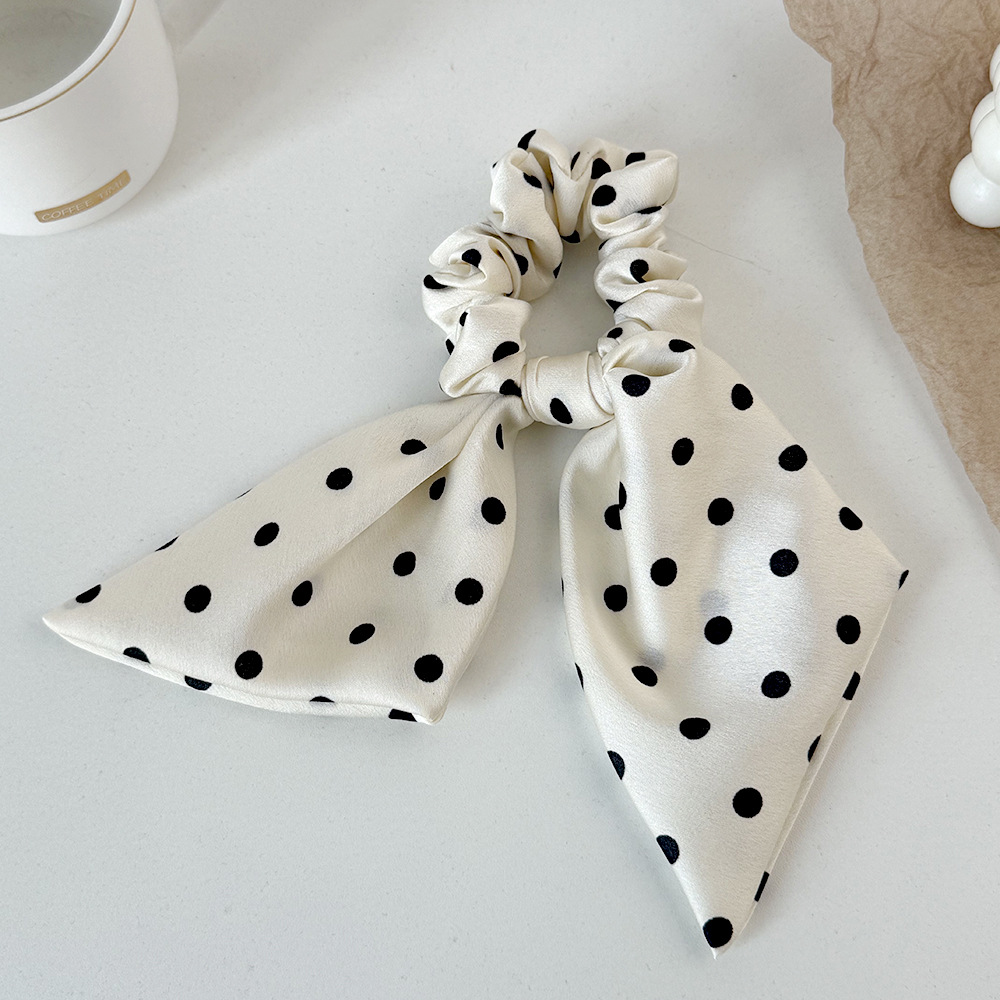 korean style black and white polka dot fabric large intestine hair band ribbon all-match bow hair rope head rope headdress wholesale