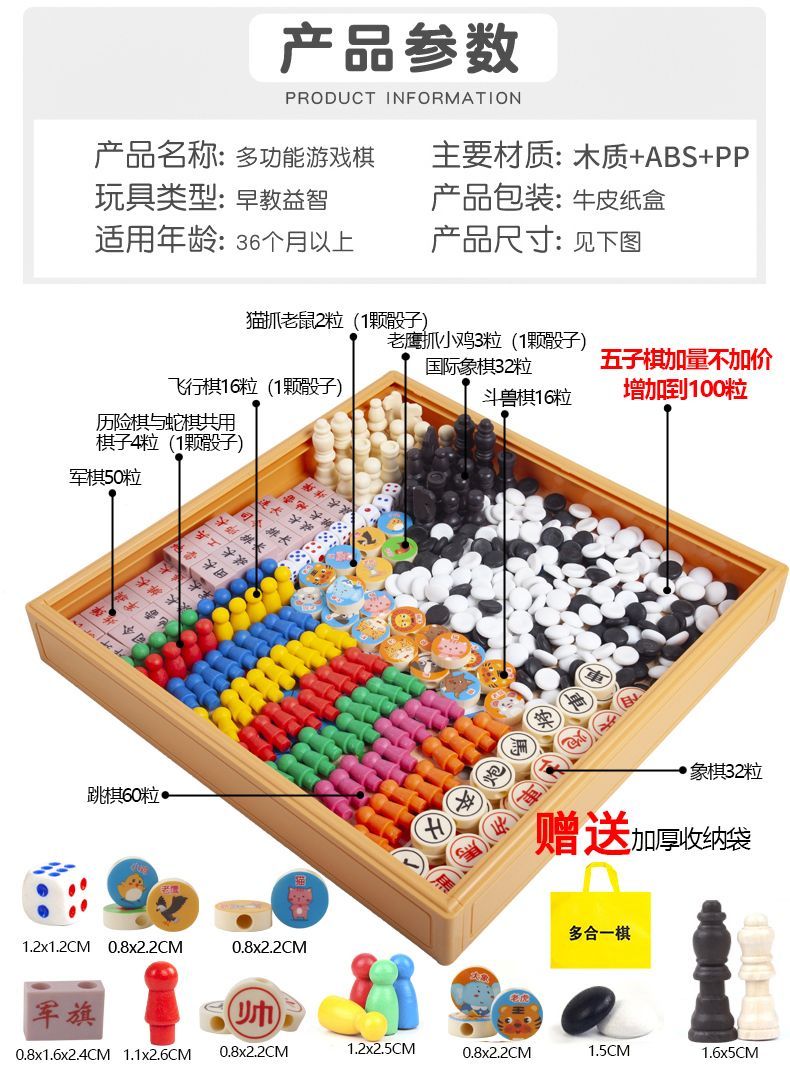 | three-in-one [large thickening] checkers + five-in-a-row + chess | CN¥ 40.28 | 999999 piece available |