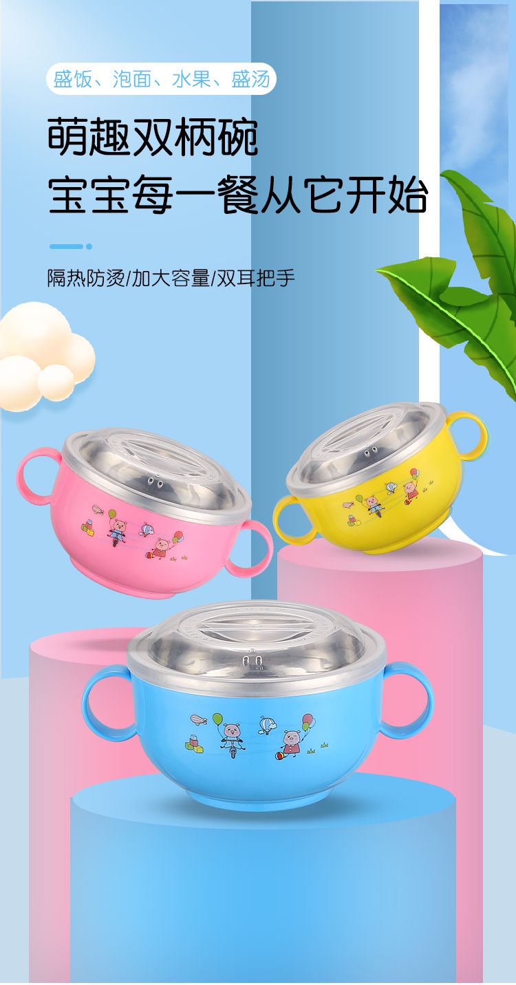 | [two blue + pink bowls] with lid and stainless steel spoon | CN¥ 19.33 | 999999 piece available |